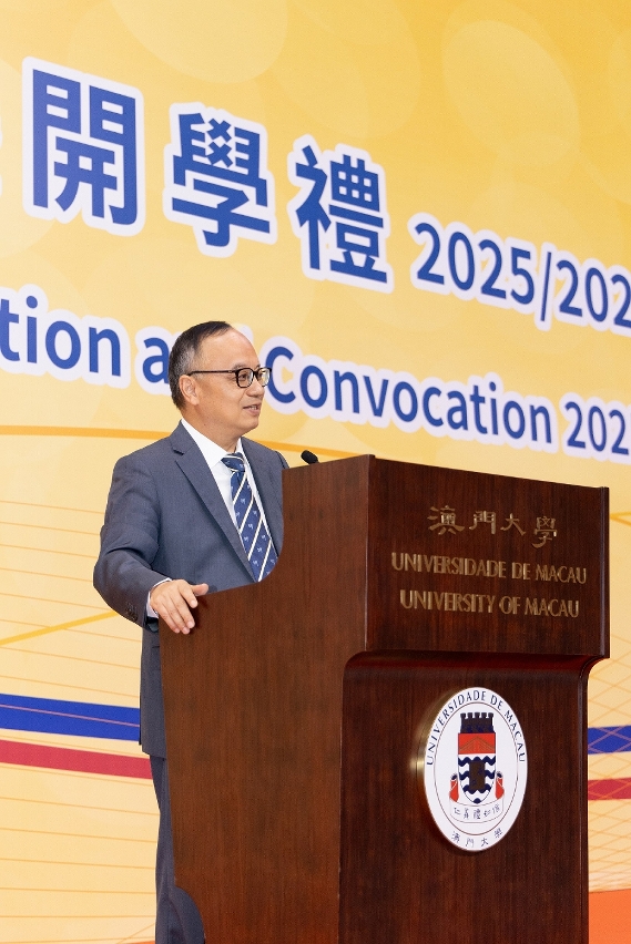 The University of Macau (UM) today (14 August) held the Convocation and the First Lecture of University for the 2025/2026 academic year, welcoming over 5,600 new students as they embark on their learning journey at the university. UM Rector Yonghua Song said that the university’s multicultural and international environment provides an important platform for students to broaden their horizons and develop their ability to collaborate with others. He also encouraged students to start their journey at UM with positivity and confidence.