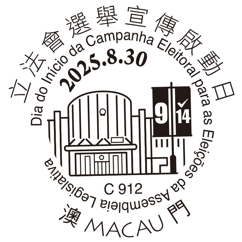 To commemorate the commencing day of the Electoral Campaign for the 2025 Legislative Assembly Election, Macao Post and Telecommunications Bureau announces that a Temporary Post Counter will be set up at Praça do Tap Seac from 9:45 to 12:45 on 30th August 2025, to provide the commemorative postmark cancellation service for “The Commencing Day of the Electoral Campaign for the 2025 Legislative Assembly Election”. In case of adverse weather conditions, the Temporary Post Counter will be relocated to Tap Seac Multisport Pavillion.
