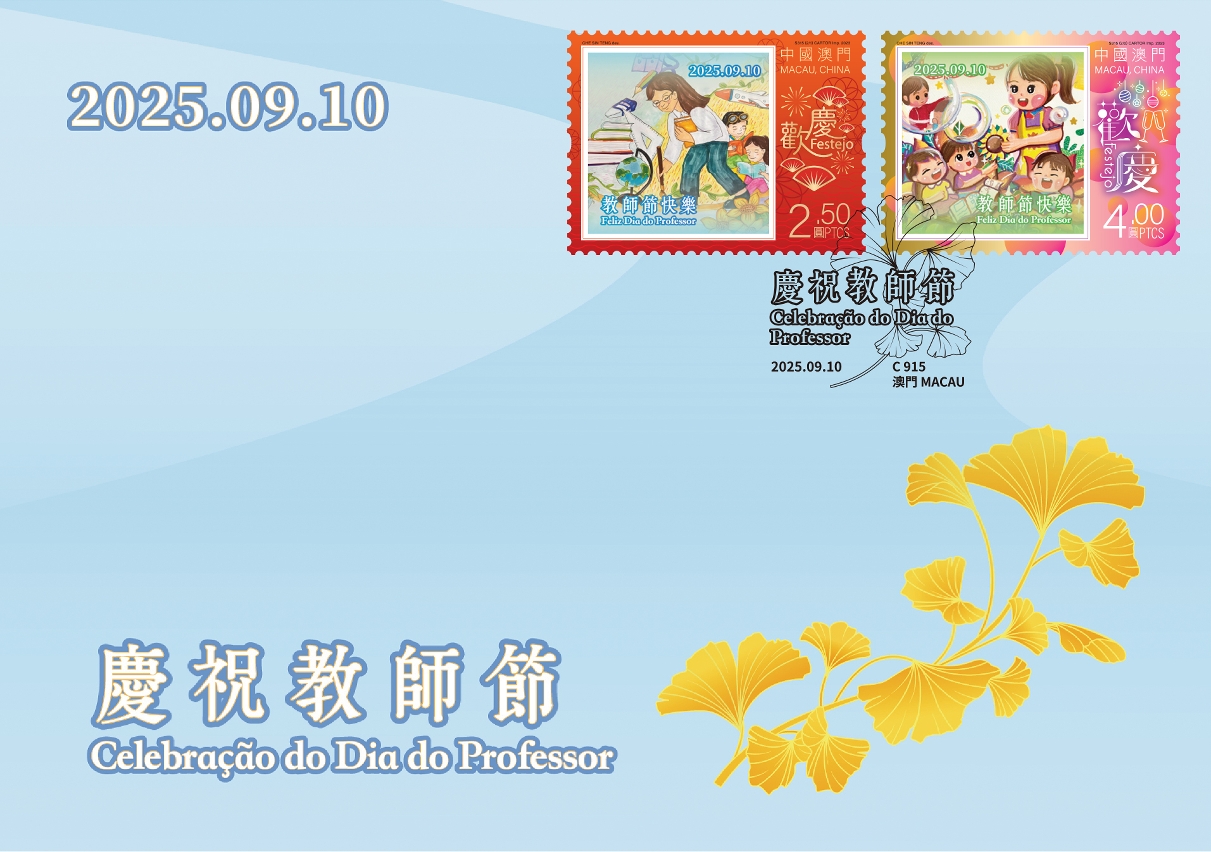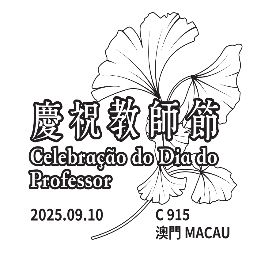 To celebrate the Teachers' Day, Macao Post and Telecommunications Bureau announces that a Temporary Post Counter will be set up at the Philatelic Shop of the General Post Office from 10:30 to 17:30 on 10th September 2025, to provide the commemorative postmark cancellation service for the "Celebration of Teachers’ Day".