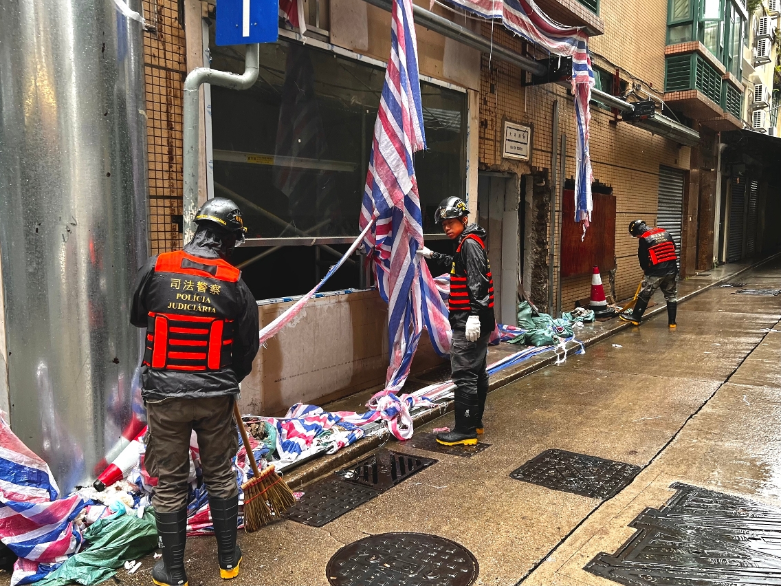 Recently, Macao has been experiencing an astronomical tide. In light of the impact of “Tapah”, the Meteorological and Geophysical Bureau issued a Yellow Storm Surge Warning at 2:30 p.m. on 7 September, prompting various government departments to issue early warnings and appeals. The Unitary Police Service, the Macao Customs Service, the Public Security Police Force, the Judiciary Police, the Fire Services Bureau, the Academy of Public Security Forces of Macao, and other relevant departments organized outreach teams to conduct awareness campaigns in low-lying areas throughout Macao, urging residents and tourists to implement wind and flood prevention measures.