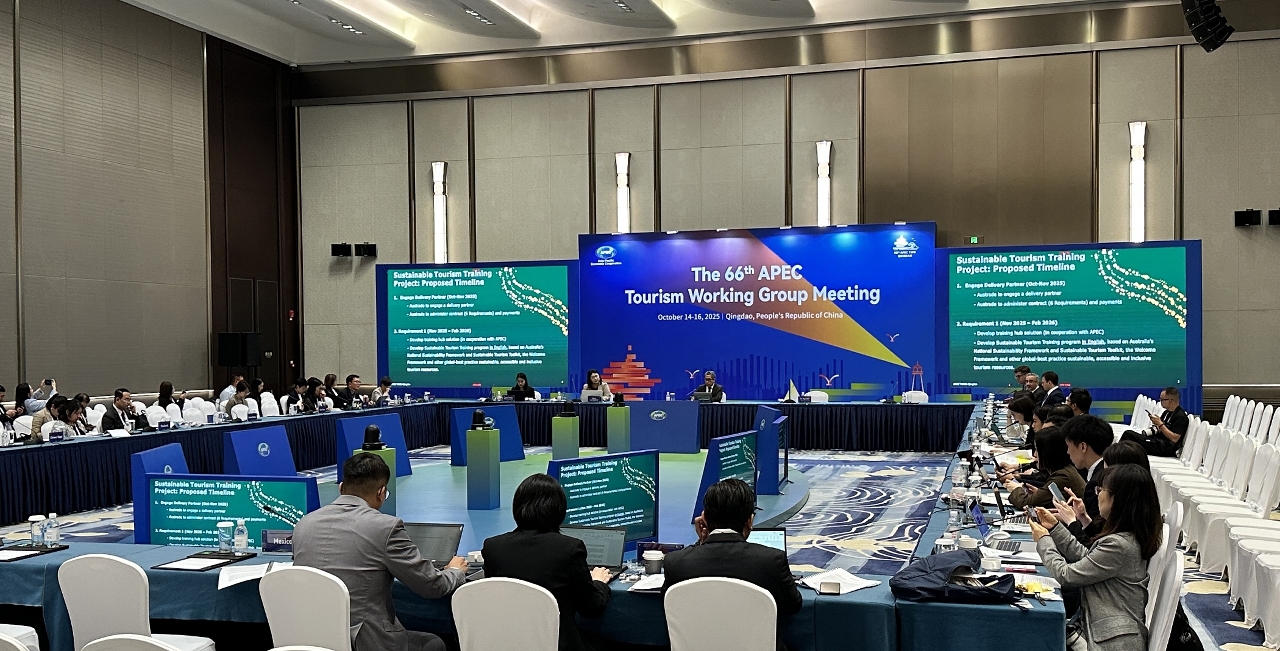 On behalf of Macao, China as a guest economy, Macao Government Tourism Office (MGTO) and the Economic and Technological Development Bureau attended the 66th Asia-Pacific Economic Cooperation (APEC) Tourism Working Group Meeting (the “Meeting”), held in Qingdao from 14 to 16 October. During the Meeting, MGTO presented an overview of Macao’s latest tourism situation and the Macao Tourism Industry Development Master Plan, while exchanging ideas with representatives of APEC’s member economies on the outlook of tourism, which elevated Macao’s influence and engagement with international tourism organizations.