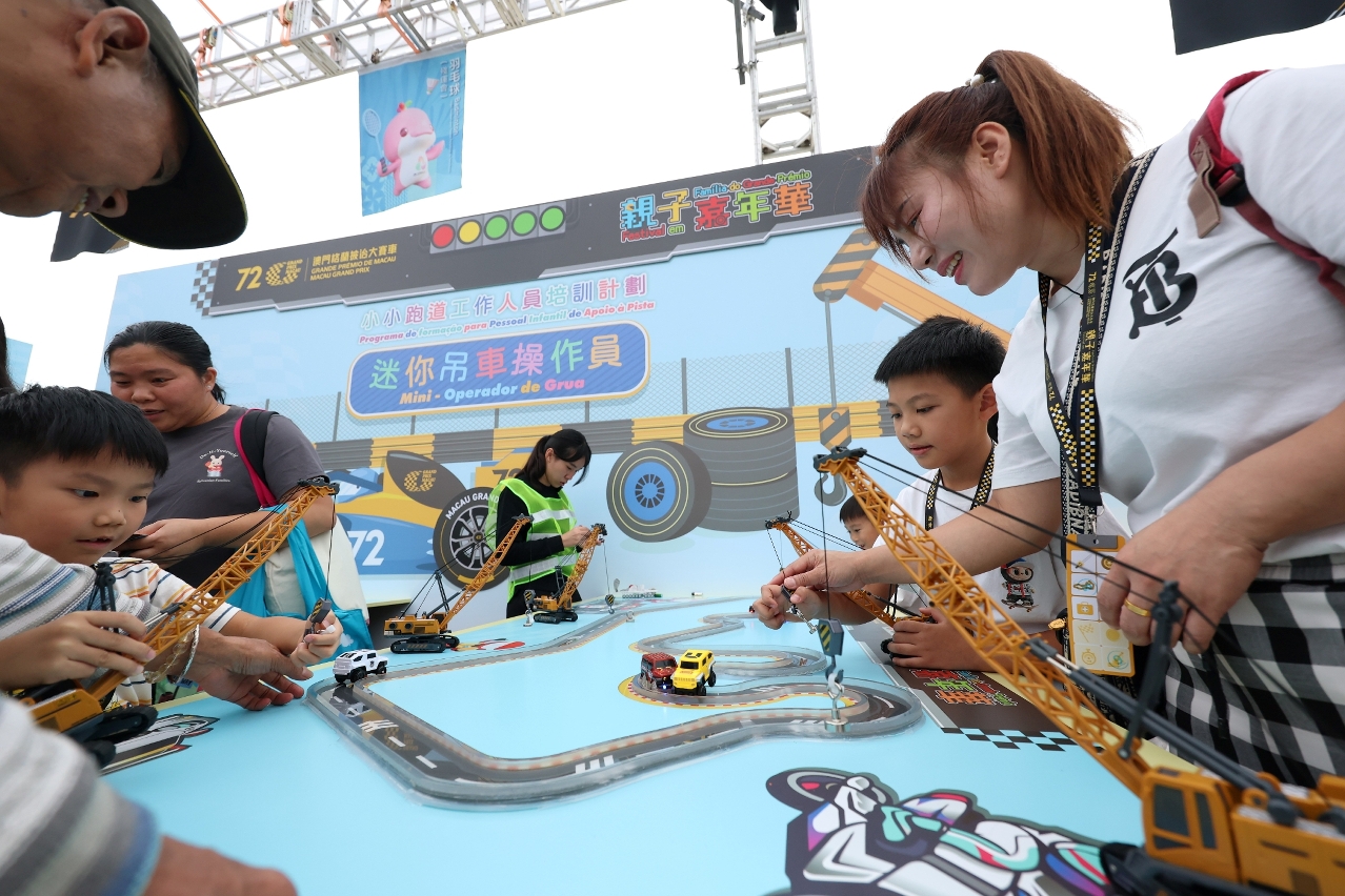 The 72nd Macau Grand Prix-themed carnival at Tap Seac Square features a recreated Guia Circuit and a mini race track, with interactive games catering to the whole family. Children participating in the event can become mini racing drivers and race track workers. Visitors can gain a first-hand understanding of the various tasks performed during the Grand Prix, and learn more about racing activities as well as have the opportunity to obtain Grand Prix-themed souvenirs. Additional elements at the carnival convey the message of enhanced family life.