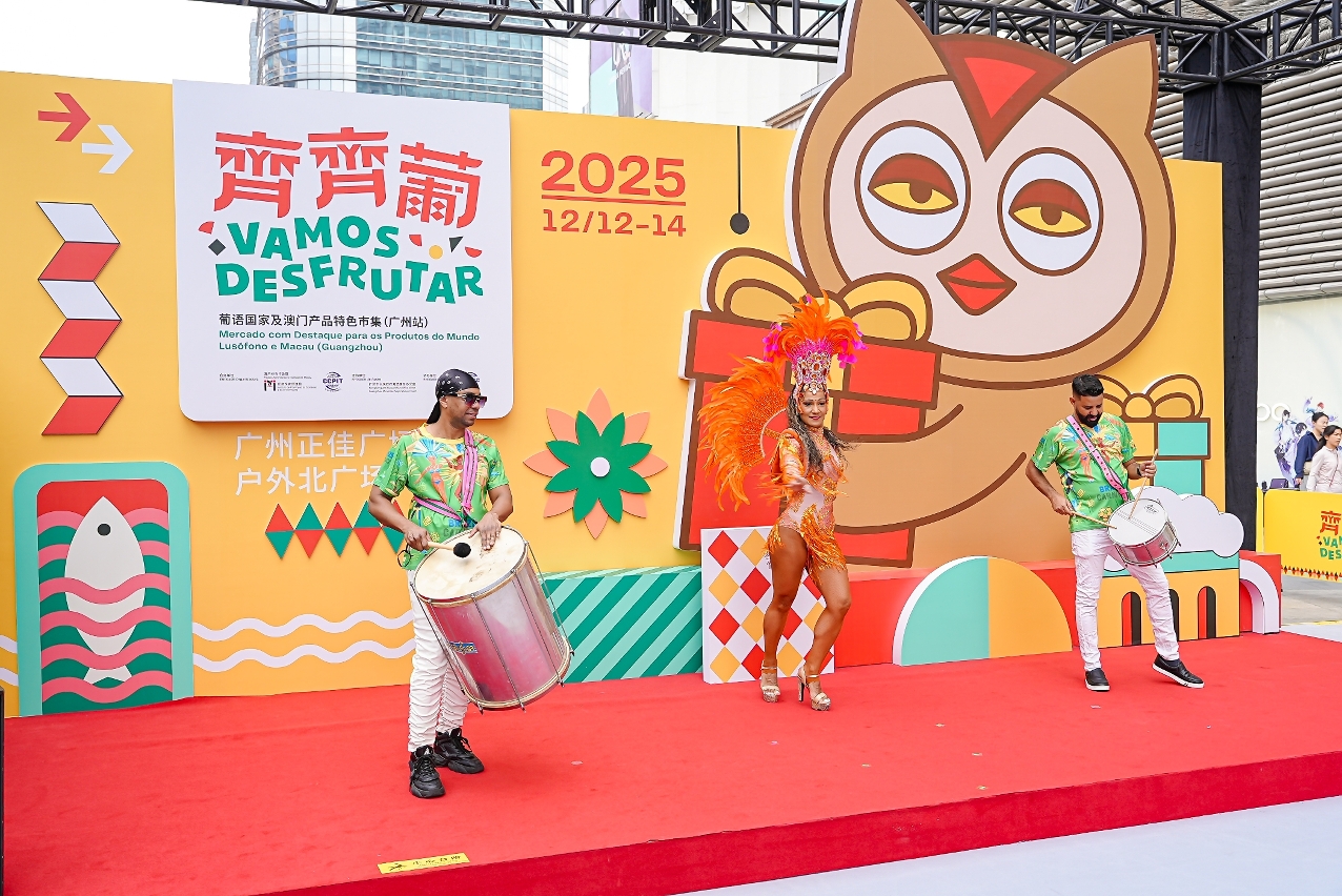 The "2025 Let’s Hang Out – Lusophone and Macao Products Bazaar" (Guangzhou), jointly organised by the Commerce and Investment Promotion Institute (IPIM) and the Guangzhou Committee of China Council for the Promotion of International Trade, with support from the Foreign Affairs Office of the People’s Government of Guangzhou Municipality and co-organised by the China Chamber of International Commerce – Guangzhou Chamber of Commerce, officially opened today (12 December) and will run for three days at the North Square of the Guangzhou Grandview Mall. The event features a showcase of products from Portuguese-speaking countries (PSCs) and Macao, along with dance performances, workshops, interactive installations, and lucky draws. Buyers, residents, and tourists are warmly invited to participate and experience the charm of PSCs’ culture in just one place.