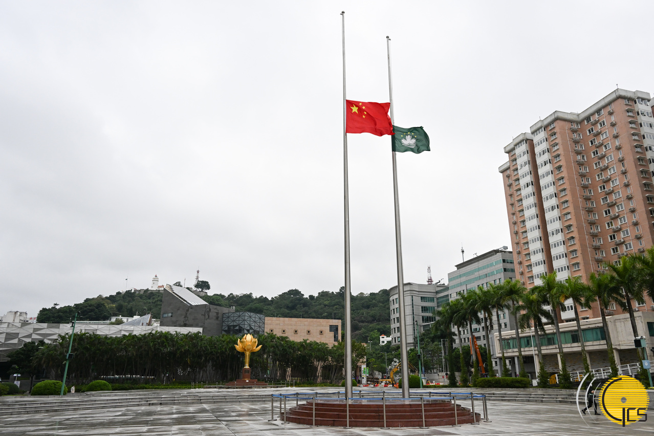 • Bandeira a meia-haste na Praça Flor de Lótus da Região Administrativa Especial de Macau, em sinal de luto pelo falecimento do ex-presidente Jiang Zemin.