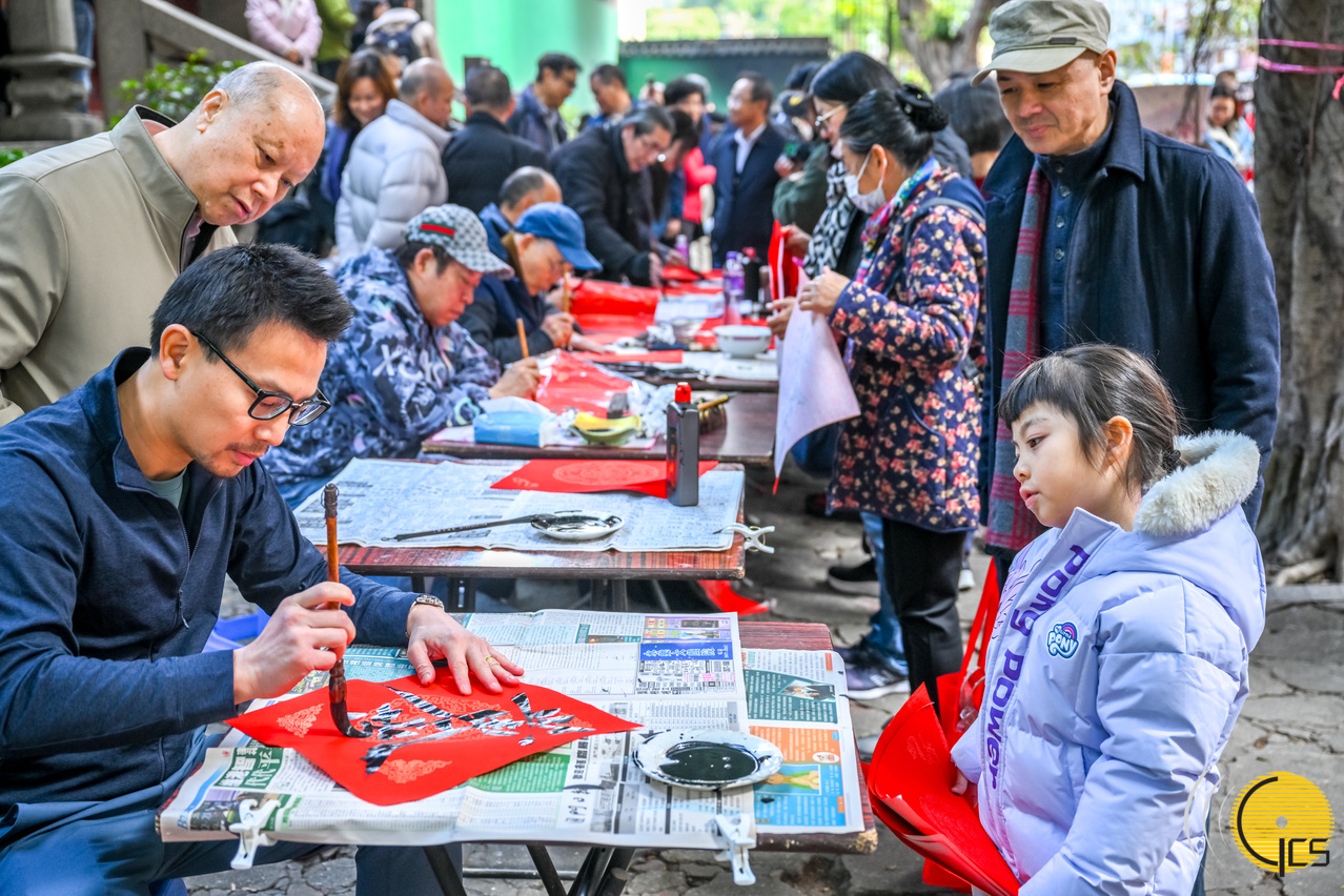 • Especialistas em caligrafia e pintura escrevem dísticos da Primavera com votos de felicidades para o Ano do Dragão, atraindo um grande número de residentes ao local, que apreciam com grande atenção esta técnica e depois levam-nos para casa.