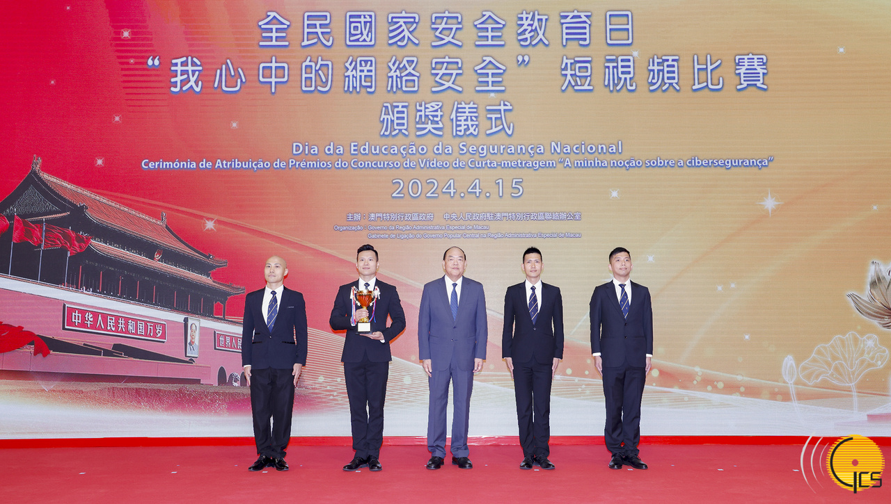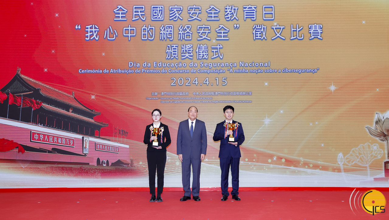 • Chefe do Executivo, Ho Iat Seng, entrega prémios aos alunos do ensino superior vencedores do concurso de composição «A minha noção sobre a cibersegurança».