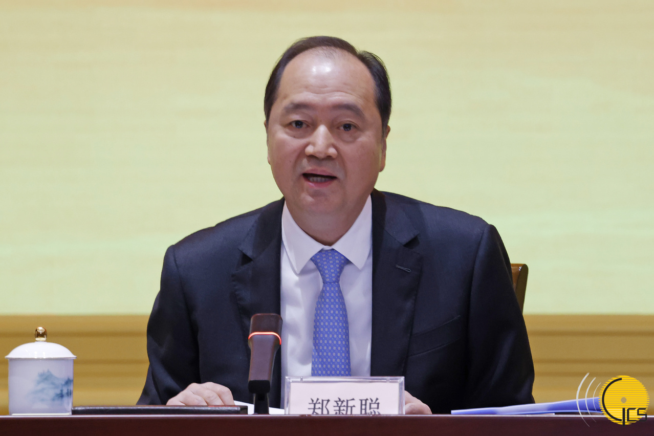 • Director do Gabinete de Ligação do Governo Central na Região Administrativa Especial de Macau (RAEM), Zheng Xincong discursa na Sessão de Transmissão do Espírito das «Duas Sessões» da Assembleia Popular Nacional e da Conferência Consultiva Política do Povo Chinês do Ano de 2024.