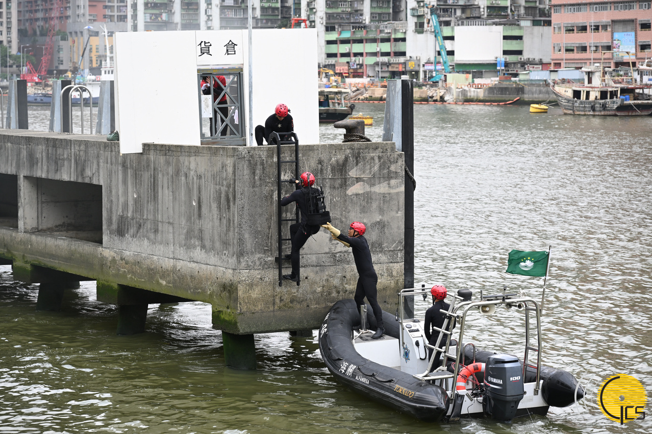 • Simulacro de tufão “Peixe Cristal 2024”-- Equipa de Mergulhadores salva com sucesso as pessoas presas e levam-nas para a zona de evacuação mais próxima, onde foram entregues aos bombeiros.