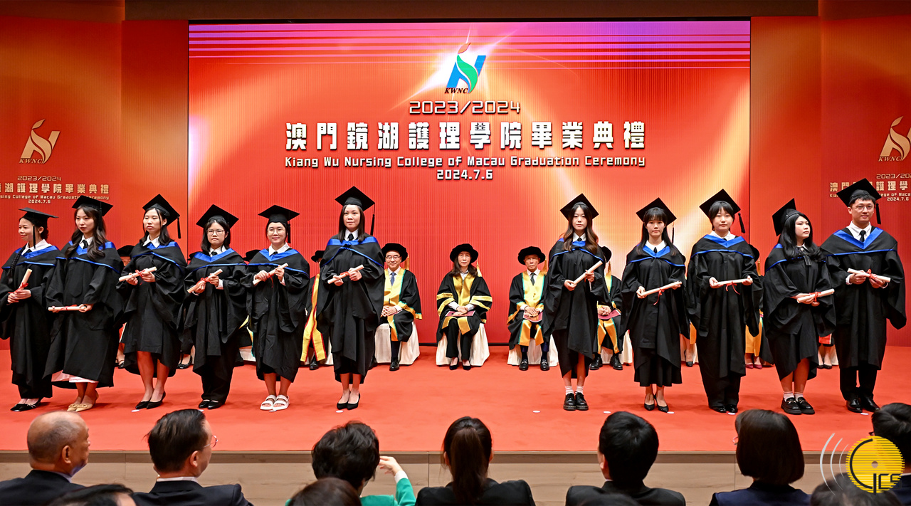 • Secretária para os Assuntos Sociais e Cultura, Ao Ieong U, em representação do Chefe do Executivo, participa na cerimónia de graduação do Instituto de Enfermagem Kiang Wu de Macau do ano lectivo 2023/2024.
