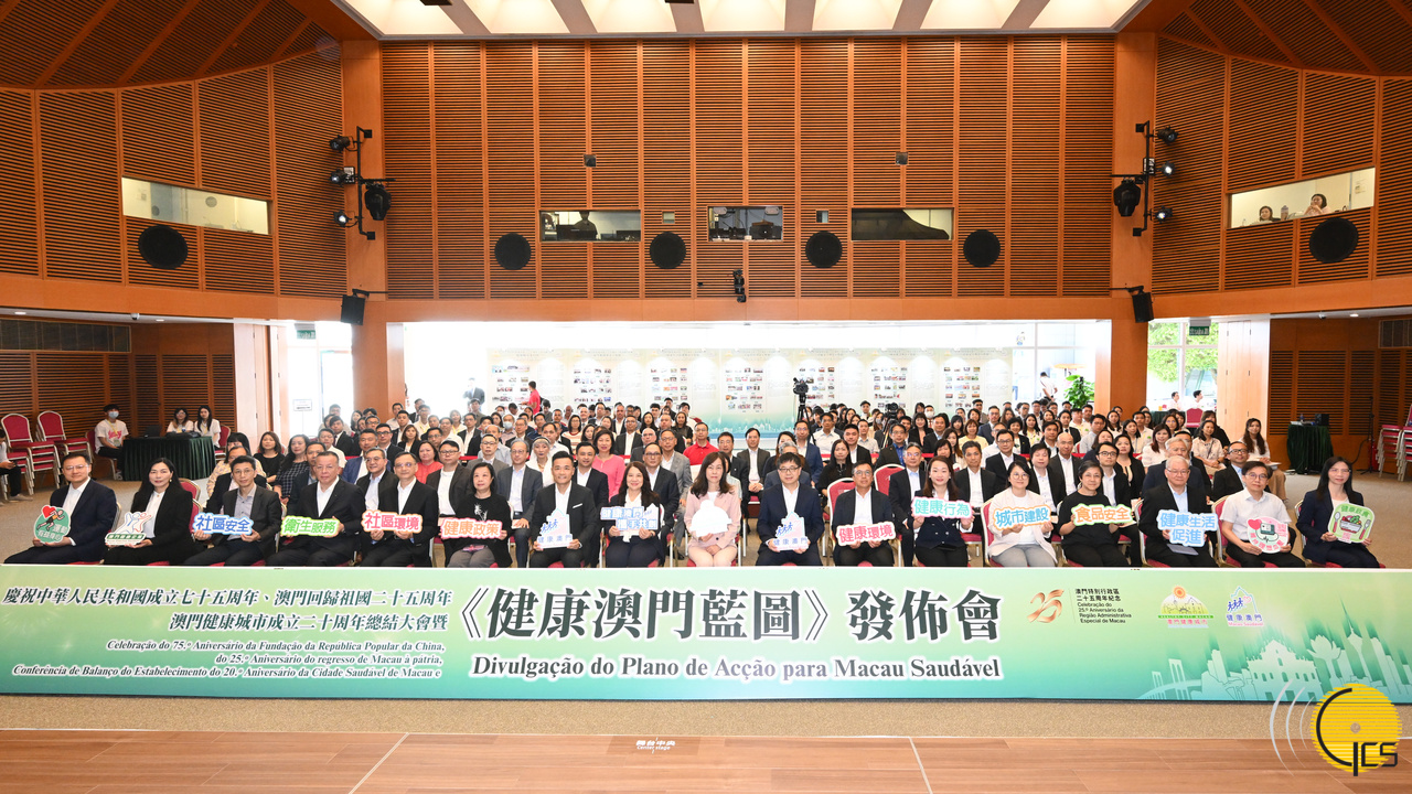 • Secretária para os Assuntos Sociais e Cultura, Ao Ieong U, na Conferência de Balanço do Estabelecimento do 20º Aniversário da Cidade Saudável de Macau e Divulgação do Plano de Acção para Uma Macau Saudável, no âmbito de celebração do 75º aniversário da Fundação da República Popular da China, e do 25º aniversário do regresso de Macau à Pátria.