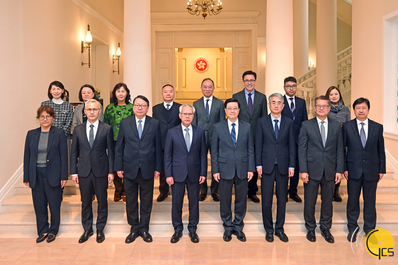 • Chefe do Executivo, Sam Hou Fai, o Chefe do Executivo da Região Administrativa Especial de Hong Kong, John Lee Ka-chiu, e os representantes do Governo de Hong Kong e de Macau.
