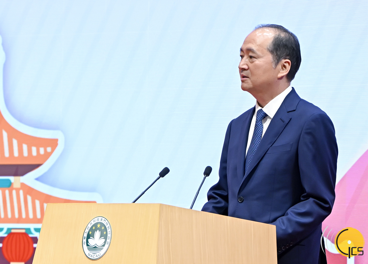 • Chefe do Executivo e Presidente da Comissão de Defesa da Segurança do Estado da Região Administrativa Especial de Macau , Sam Hou Fai, discursa na cerimónia de inauguração da «Exposição sobre a Educação da Segurança Nacional» de 2025.