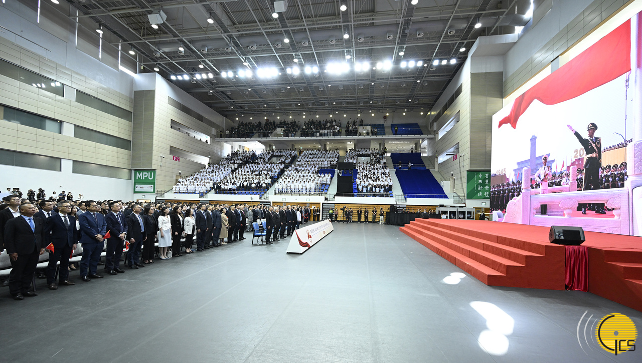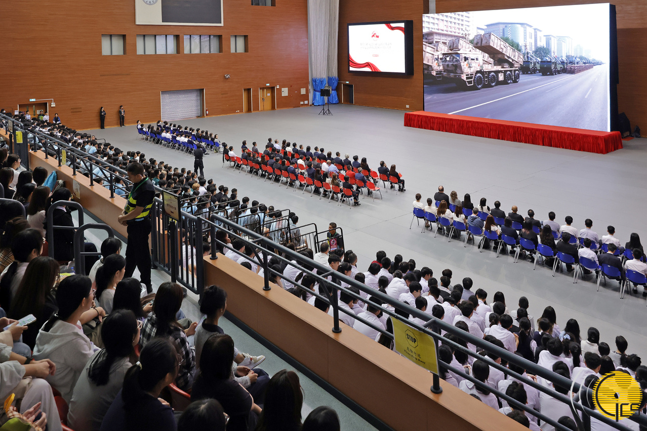 O Governo da Região Administrativa Especial de Macau organiza no Pavilhão Desportivo da Universidade Politécnica de Macau uma sessão da transmissão em directo da cerimónia comemorativa do 80.º Aniversário da Vitória da Guerra de Resistência do Povo Chinês contra a Agressão Japonesa e da Guerra Mundial Antifascista.