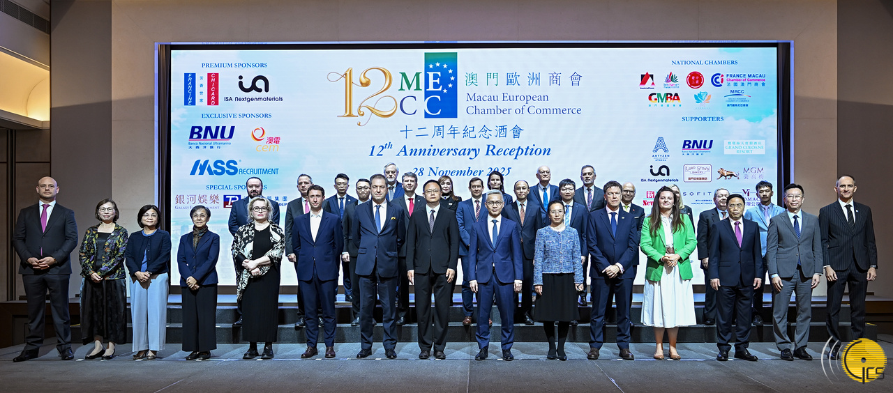• Secretário para a Economia e Finanças, Tai Kin Ip, na recepção em celebração do 12º aniversário da Câmara de Comércio Europeia em Macau.