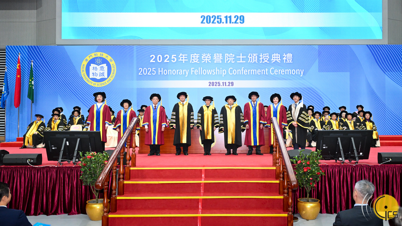 • Secretária para os Assuntos Sociais e Cultura, O Lam, na cerimónia de outorga de título de professores honorários da Universidade de Ciência e Tecnologia de Macau 2025.