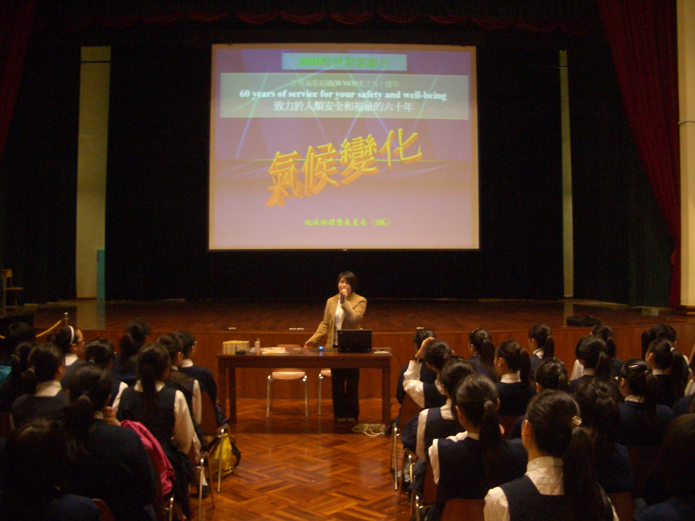 Entre os meses de Março a Maio, funcionários destes Serviços foram despachados para conduzir palestras sobre as Alterações Climáticas num total de mais de trinta escolas com cerca de 3800 estudantes, reagindo com entusiasmo. As palestras foram preparadas em três versões, a versão para escola primária e duas versões para escola secundária e foram apresentadas em chinês, em português ou na língua inglesa. As palestras englobaram: causas das alterações climáticas, a situação actual das ameaças de alterações climáticas, mostra dos eventos de fenómenos meteorológicos extremos e as medidas de minimização das alterações climáticas. Durante as palestras tiveram tmabém uma sessão inter-activa de “perguntas e respostas” cujo objectivo é para aumentar os conhecimentos sobre as alterações climáticas dos estudantes.