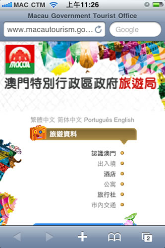A Direcção dos Serviços de Turismo (DST) disponibiliza a partir de Novembro uma aplicação para telemóvel da página electrónica da DST e acrescenta uma versão em italiano aos idiomas da sua página na Internet, seguindo as directivas da Linhas de Acção Governativa para o Turismo, de melhoria contínua da qualidade dos serviços turísticos prestados.