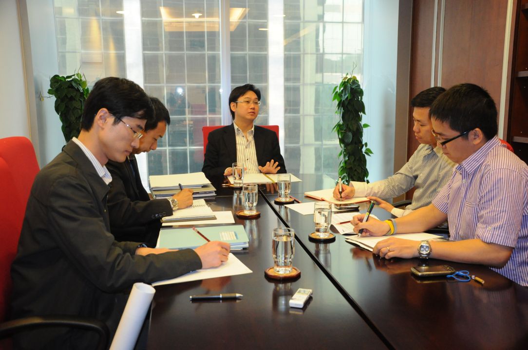 O director da DSPA, Cheong Sio Kei, o subdirector, Vai Hoi Ieong, e o chefe do Centro de Gestão de Infra-estruturas Ambientais, Chan Kuok Ho, o membro do Conselho Consultivo do Ambiente e subchefe da Comissão de Serviços Comunitários da Federação das Associações dos Operários de Macau, Leong Pou U, e o membro do Grupo de Acompanhamento dos Assuntos Cívicos, Lam U Tou (tradução) reuniram-se, em 29 de Novembro de 2010, para trocar ideias sobre o tratamento de resíduos.