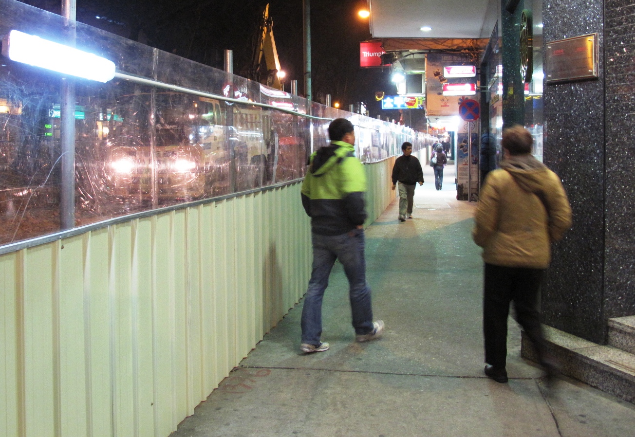 E ainda não obstante a este facto, apesar da utilização de painéis transparentes na obra de reordenamento da rede de drenagem da Avenida de Horta e Costa, no sentido de não obstruir a visão dos transeuntes e não haver pontos cegos, contudo por questões de segurança pública durante a quadra festiva do ano novo lunar e para responder às aspirações de alguns dos comerciantes, veio já o empreiteiro, conforme o exigido pela DSSOPT, reforçar a iluminação nos painéis transparentes que separam o local da obra com o passeio. Estes ascenderão automaticamente no período nocturno, por forma a salvaguardar assim a suficiente iluminação durante este período.
