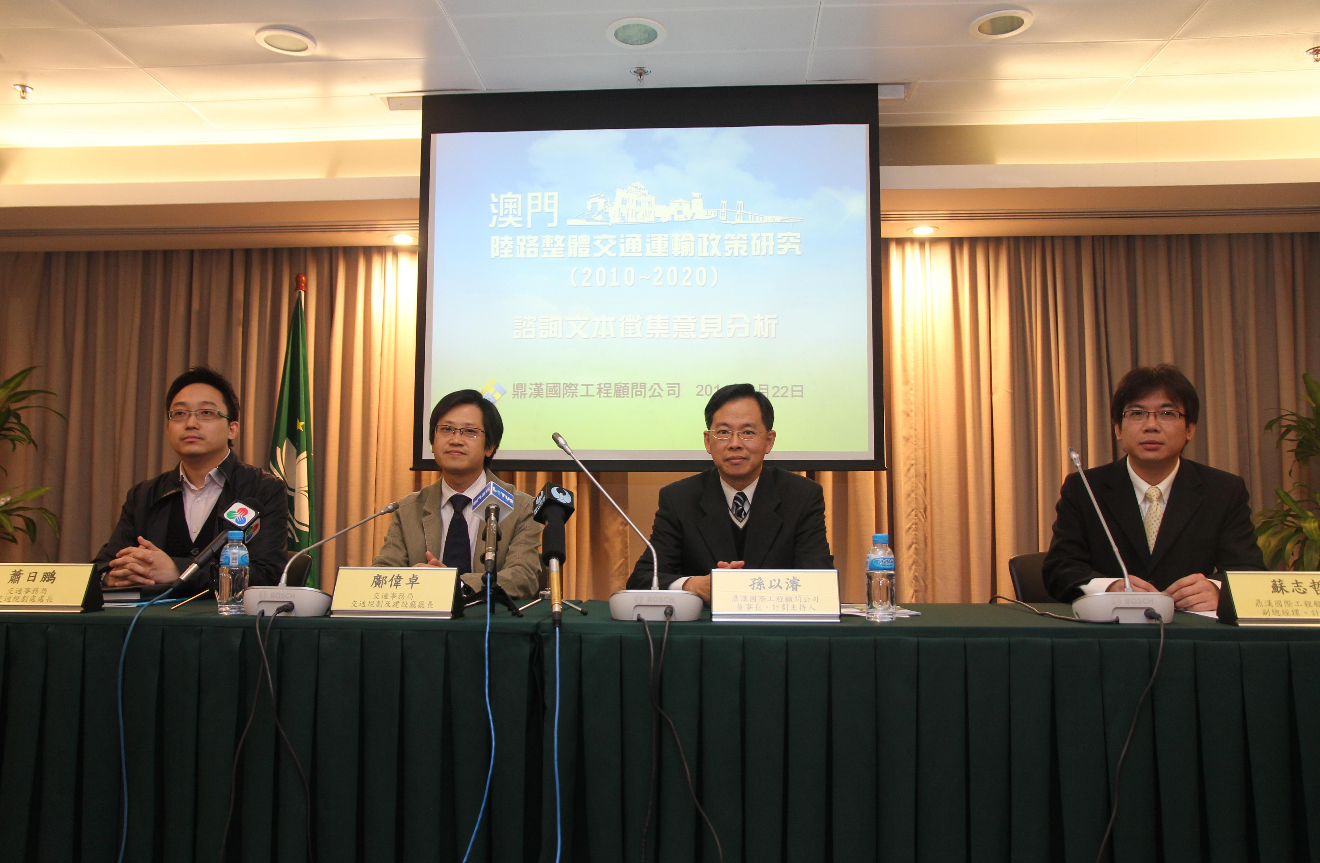 Terminou o processo de sintetização e análise das opiniões recolhidas na segunda fase da Política Geral do Trânsito e Transportes Terrestres de Macau (2010-2020). Durante este período foram recolhidos 457 textos de opiniões e um total de 1 006 sugestões. Em paralelo, para conhecer junto dos cidadãos o grau de identidade associada ao texto para consulta, a expectativa para com o nível dos serviços de transportes públicos e a pretensão sobre a urgência das medidas de controlo de veículos, a DSAT realizou um inquérito extenso em 50 pontos com mais afluência de pessoas, 11 escolas secundárias, três instituições de ensino superior e várias associações, tendo recolhido 7 321 questionários cuja taxa de resposta atingiu os 90%, o que proporcionou fundamentos científicos importantes para acções de acompanhamento da política e aprofundamento do estudo.