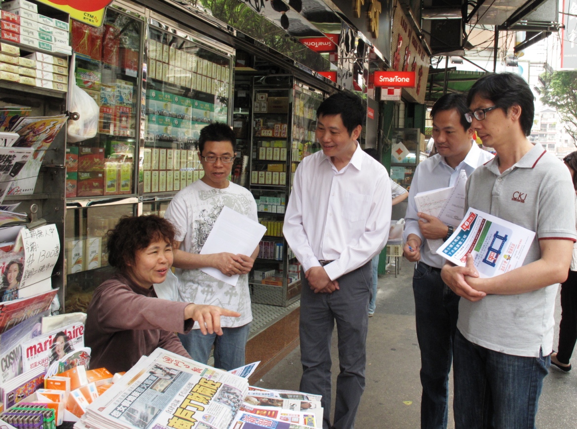 Para melhor conhecer as opiniões e sugestões dos cidadãos e comerciantes, veio ultimamente o Subdirector da DSSOPT, Shin Chung Low Kam Hong, o Chefe, subst.º, da Divisão de Hidráulica e Saneamento, Kuok Chi Cheong, e o engenheiro U Kuok Tat, juntamente com os representantes da Associação de Beneficência e Assistência Mútua dos Moradores do Bairro O T'âi, visitar todos os comerciantes e as empresas afectadas pela obra que se encontram no 6.º troço, incluindo os vendilhões instalados ao longo da Avenida de Horta e Costa, no sentido de lhes explicar o plano de trabalho.
