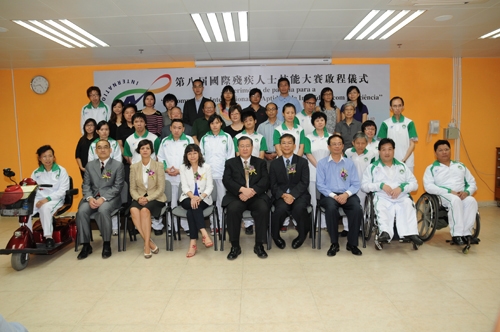 A Direcção dos Serviços para os Assuntos Laborais (DSAL), o Instituto de Acção Social (IAS) e a Caritas de Macau, realizaram no dia 15 de Setembro (quinta feira) pelas 16 horas, no Departamento de Formação Profissional (DFP) a cerimónia de partida da delegação de Macau, que vai participar na “8ª Competição Internacional de Aptidões de Indivíduos com Deficiência”, tendo o Dr. Shuen Ka Hung, Director da DSAL, a Dra. Vong Yim Mui, Vice-Presidente do IAS e o Sr. Pun Chi Meng, Secretário-Geral da Caritas de Macau, atribuído os diplomas de distinção aos 15 concorrentes. As entidades organizadoras desejam que a delegação se empenhe para obter bons resultados, contribuindo para a boa imagem de Macau.