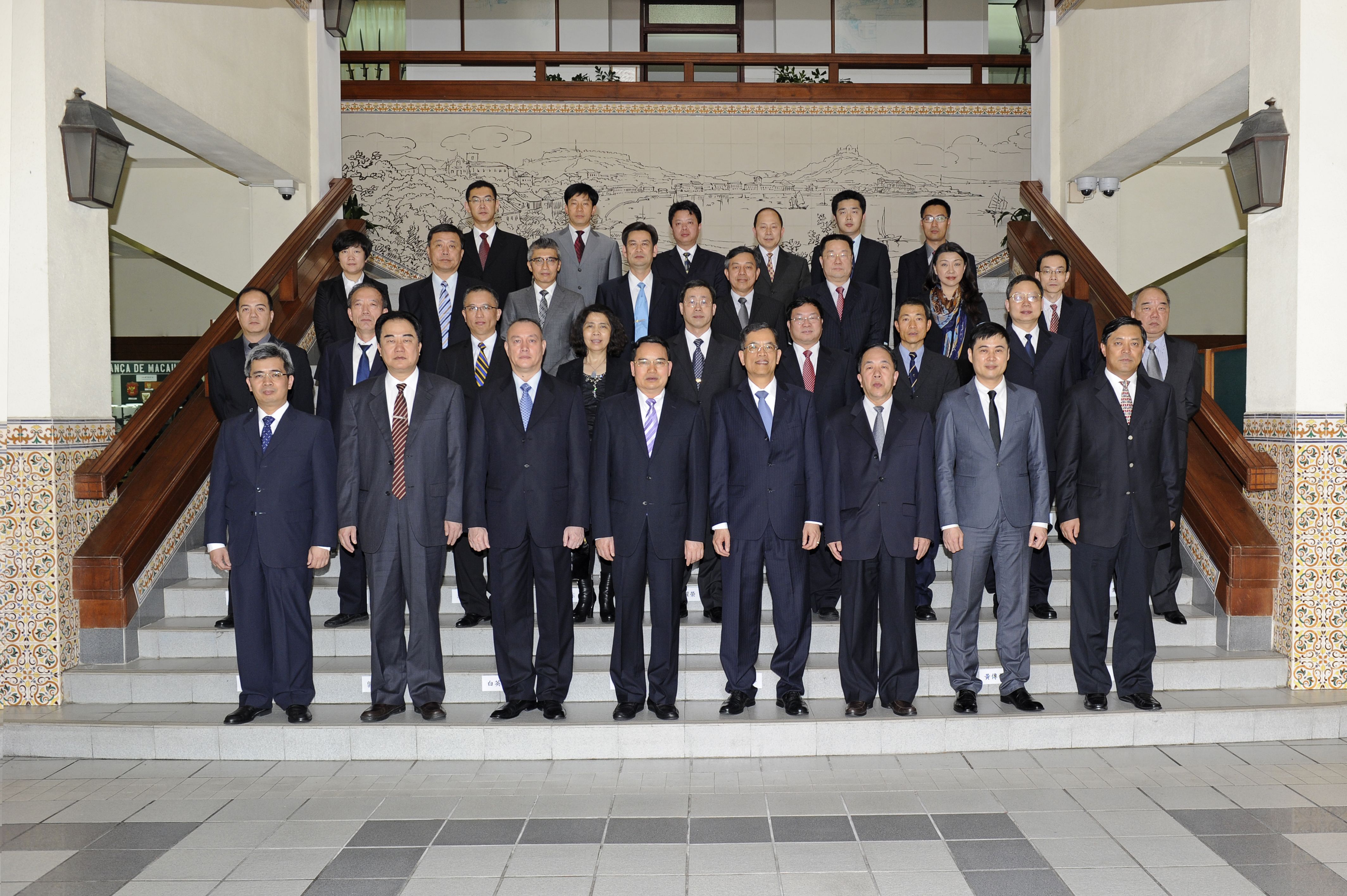 A delegação de Macau, chefiada pelo secretário para a Segurança, Cheong Kuoc Vá, integrou ainda o comandante-geral dos Serviços de Polícia Unitários, José Proença Branco, chefe do Gabinete do Secretário para a Segurança, Vong Chun Fat, director da Polícia Judiciária, Wong Sio Chak, comandate do Corpo de Bombeiros, Ma Io Weng, comandante do Corpo de Polícia de Segurança Pública, Lei Sio Peng, director da Escola Superior das Forças de Segurança de Macau, Hoi Sio Iong, director da Direcção dos Serviços das Forças de Segurança de Macau, Pun Su Peng, coordenador do Gabinete Coordenador de Segurança, Cheang Seng Chio, adjunto do Director-Geral dos Serviços de Alfândega, Sin Wun Kao e ainda os assessores do Gabinete do Secretário para a Segurança. Entretanto, a delegação de Guangdong, liderada pelo director dos SSPPG, Liang Weifa, fez-se ainda representar por responsáveis das diversas áreas no âmbito da gestão migratória, gestão de segurança, investigação económica, investigação criminal, proibição de drogas, segurança informática, gestão fronteiriça, serviços de bombeiros e da educação/formação. Foram também convidados a participar os responsáveis do Serviço de Ligação Policial do Gabinete de Ligação do Governo Popular Central na RAEM, da Estação Geral de Inspecção Fronteiriça de Zhuhai e do Serviço de Segurança Pública da Cidade de Zhuhai.