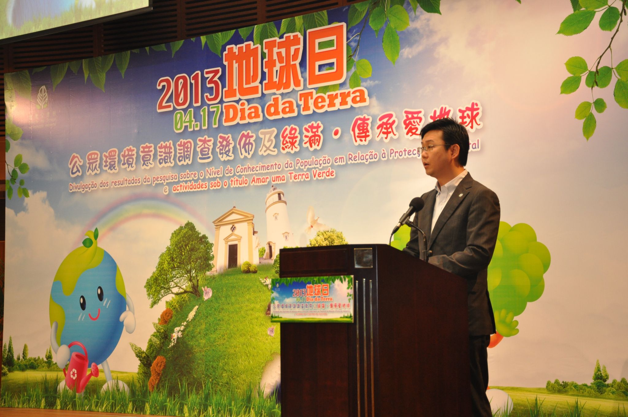 O dia 22 de Abril de cada ano é o “Dia da Terra”. A Direcção dos Serviços de Protecção Ambiental (DSPA) aproveita esta ocasião para divulgar amplamente a mensagem de preservação ambiental e de amar a Terra, tendo realizado, no dia 17 de Abril, actividades do “Dia da Terra 2013 – Divulgação dos resultados da Pesquisa sobre o Nível de Conhecimento da População de Macau em Relação à Protecção Ambiental e actividades sob o título Amar uma Terra Verde”, onde foram publicados os resultados da Pesquisa e se exibiu o primeiro episódio intitulado “Vestido adorável” do filme curto de sensibilização “Amar uma Terra Verde”.