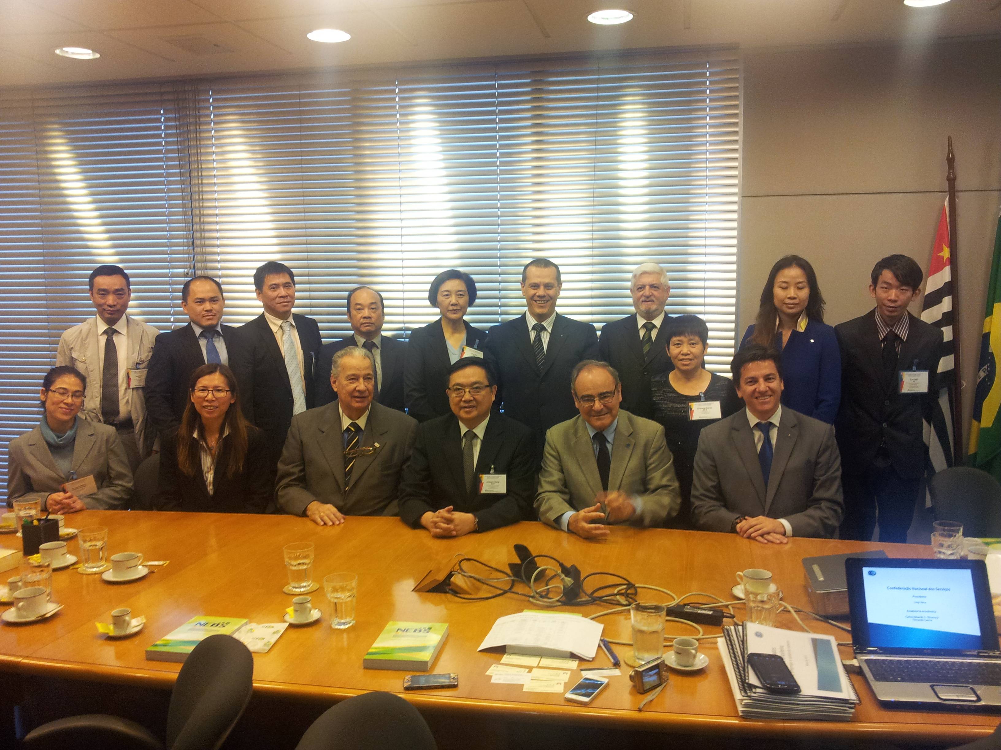 Durante a estadia em São Paulo, a Delegação Empresarial de Macau visitou a Confederação Nacional de Serviços (CNS) e a Associação Comercial de São Paulo. Na visita à CNS, o Presidente da referida CNS, Dr. Luigi Nese, fez uma apresentação sobre a situação mais recente do sector de serviços no Brasil, bem como das perspectivas daquele sector no futuro, e propôs que Macau e o Brasil cooperassem em conjunto para o desenvolvimento dos sectores de serviços e turismo. Além disso, a Delegação de Macau visitou a Associação Comercial de S. Paulo, onde foi recebida pelo Vice-Presidente Dr. Luis Roberto Gonçalves e os outros dirigentes daquela associação. O economista Dr. Ulisses R. M. Gamboa, da Associação Comercial de S. Paulo, fez uma introdução sobre a situação do desenvolvimento económico e comercial do Brasil.