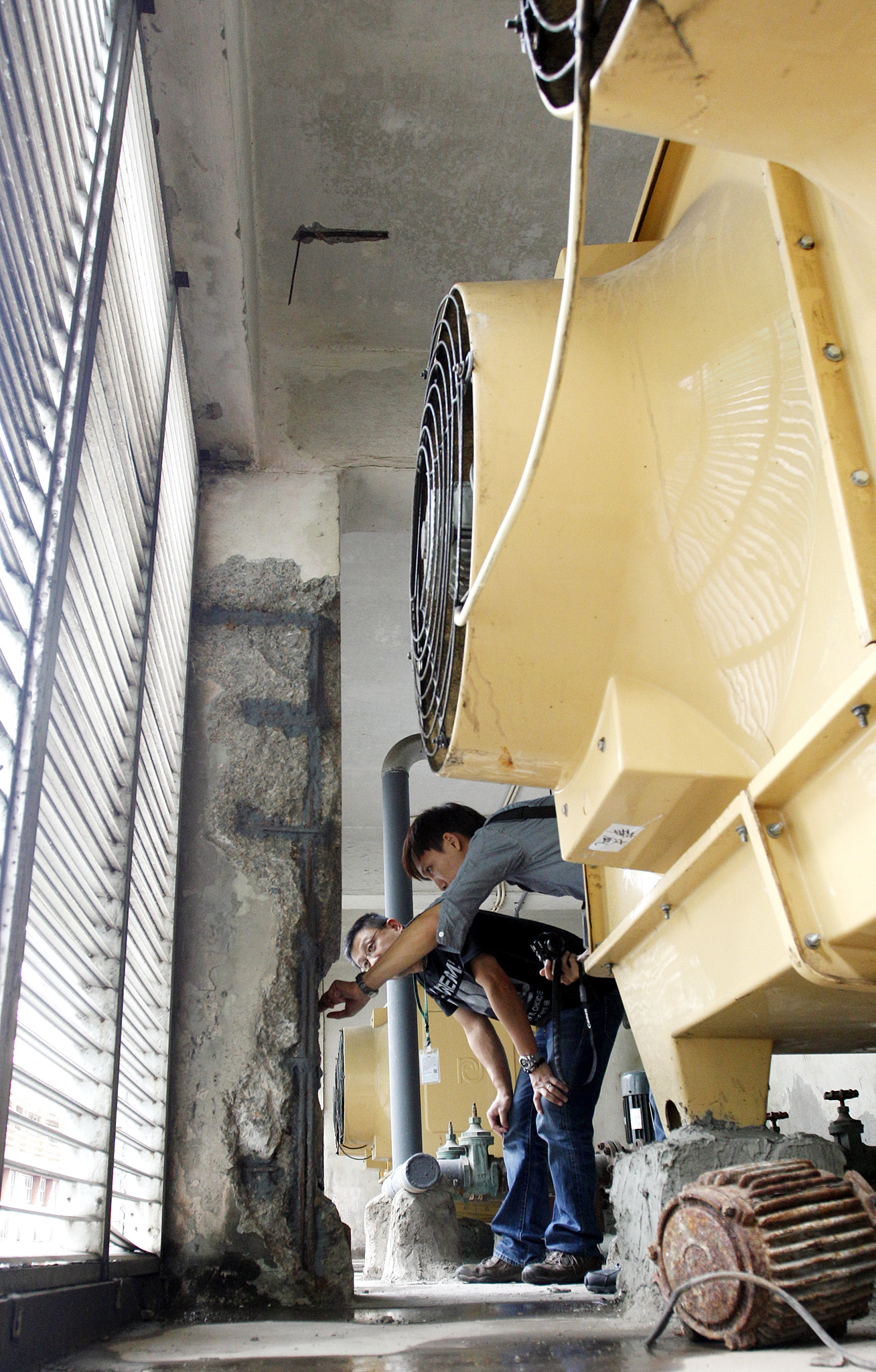 Chan Weng Hei referiu que a DSSOPT está bastante atenta à questão do perigo contra a segurança pública causada pelas obras realizadas na loja localizada neste edifício, onde está a ser explorado o supermercado. Os representantes dos condóminos referiram ainda que suspeitam que as torres de refrigeração do sistema de climatização desta loja comercial tenham causado o desprendimento do acabamento e exposição da armadura de aço de parte dos pilares estruturais dos compartimentos técnicos deste edifício e que as arcas de refrigeração do supermercado conduziram ainda a infiltração de água no tecto da cave do edifício. A Comissão de Vistoria composta pelos técnicos da DSSOPT concluiu na semana passada a inspecção no local e ultimamente concluiu o relatório de vistoria. De acordo com o relatório de vistoria, existem indícios que mostram que estas situações devem-se à falta de manutenção das torres de refrigeração e dos gigantescos aparelhos de ventilação localizados no compartimento técnico, assim como o local onde se encontra a arca de refrigeração não ter devido tratamento térmico, pelo que a DSSOPT veio oficiar ao arrendatário da loja comercial para a entrega dentro do prazo fixado do plano de manutenção, reparação e restauração dos pilares estruturais danificados conforme o exigido no relatório de vistoria, bem como devidamente tratar da questão da goteira verificada no tecto da cave e conclusão das respectivas obras dentro do prazo de 2 meses a partir da data da autorização do seu início.