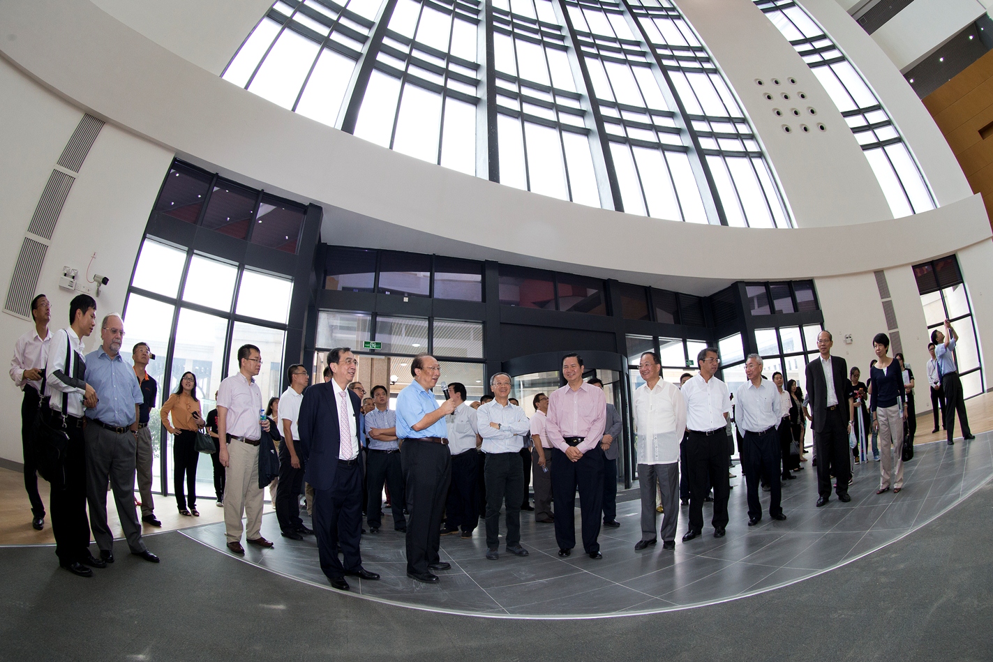 Hoje de manhã, a delegação chefiada pelo Secretário Cheong U e o Secretário para os Transportes e Obras Públicas, Lau Si Io, passou, pela primeira vez, pelo túnel subfluvial e entrou no novo campus, marcando assim um momento histórico.