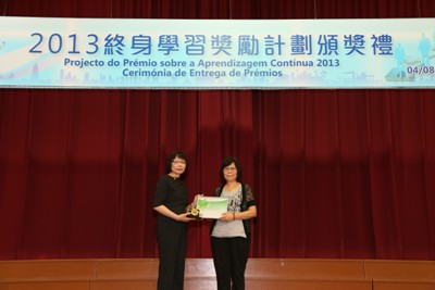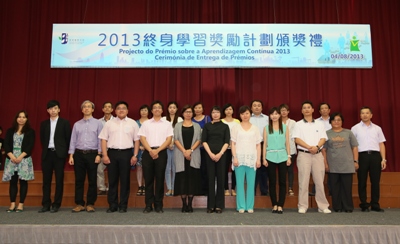 A Cerimónia de Entrega de Prémios do “Projecto do Prémio sobre a Aprendizagem Contínua 2013” realizou-se, no dia 4 de Agosto, pelas 16H00, na Escola Secundária Luso-Chinesa de Luís Gonzaga Gomes. O número de participantes aumentou de 338, em 2005, para 2.980 este ano. Em comparação com o último ano, registou-se um aumento do número de premiados para 360, dos quais, dois obtiveram o prémio mais significativo – “Cidadão Modelo de Aprendizagem Contínua”, 24 foram distinguidos com o prémio “Cidadão de Aprendizagem Contínua”, 218 com o prémio “Cidadão Actuante de Aprendizagem” e os restantes 116 com o prémio “Cidadão Amador de Aprendizagem”. Para além disso, este ano, mais cinco instituições educativas aderiram ao projecto, como instituições associadas, tendo, assim, aumentado para 102 participantes no projecto.
