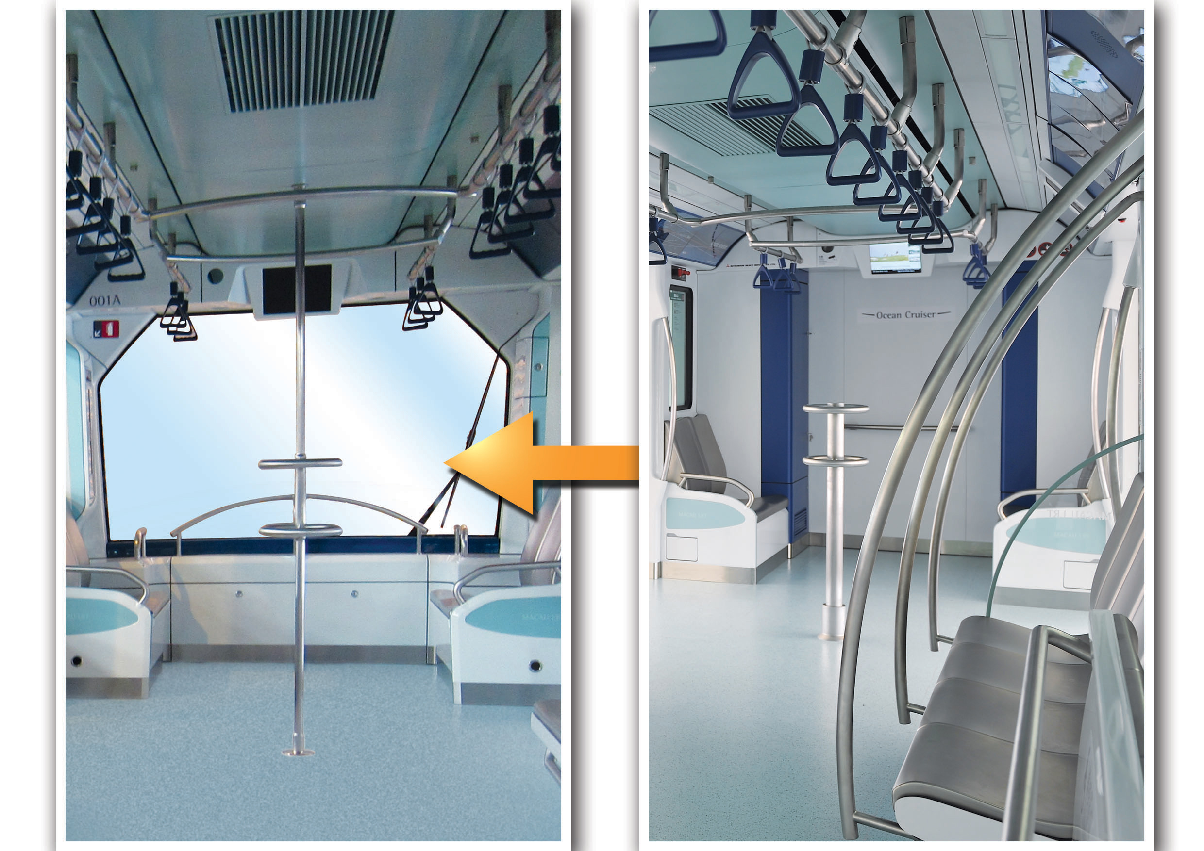 Antes do arranque oficial do trabalho de fabrico dos comboios, o GIT resumiu as opiniões e sugestões recolhidas na exibição do comboio e carruagem, entregou-as seguidamente à equipa técnica profissional e ao fornecedor dos comboios para referência e análise. Após a discussão em várias reuniões, o projecto do aspecto interior da carruagem foi optimizado e melhorado, o que permite uma carruagem mais humanística. Os melhoramentos principais são os seguintes: os lugares sentados passaram a ser de aço inoxidável, que se considera mais durável, tendo sido melhorado o seu projecto do aspecto exterior para que os mesmos sejam mais confortáveis; aumentou-se a quantidade de pegas para sustentação dos passageiros e ajustou-se a respectiva localização e altura para espaços mais adequados, de modo a facilitar o uso dos passageiros com altura diferente; aumentou-se a dimensão dos painéis de aviso e informação aos passageiros dentro da carruagem e ajustou-se o lugar de colocação dos mapas das linhas e de algumas sinaléticas, a fim de que os passageiros leiam com mais facilidade; o espaço reservado à cadeira de rodas e os lugares sentados prioritários foram claramente separados, elevou-se a localização da instalação para a fixação da cadeira de rodas, no sentido de prestar, durante a viagem, melhores condições às pessoas fisicamente deficientes.