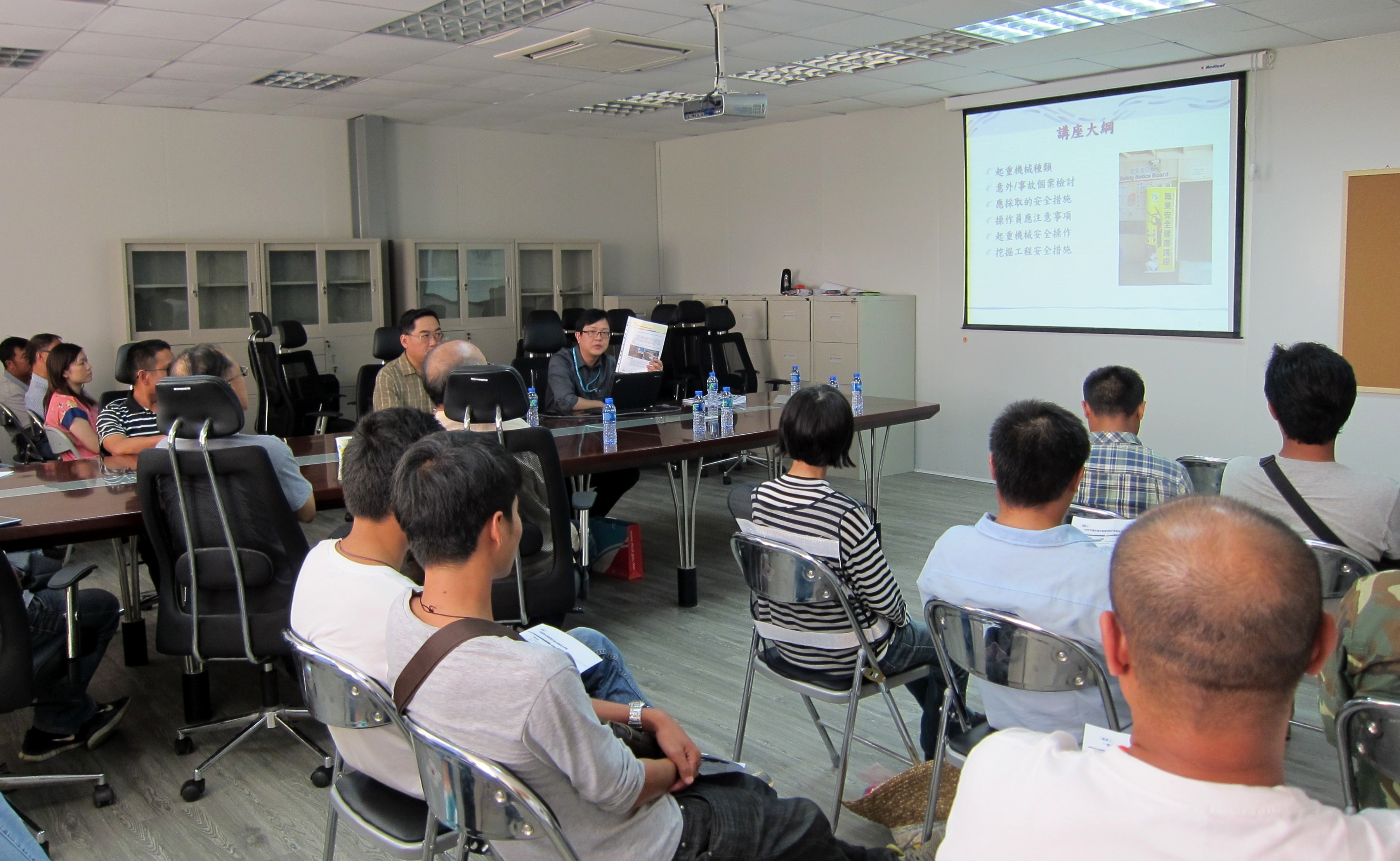 Teve lugar anteriormente (dia 11) a palestra nas instalações do estaleiro do Parque de Materiais e Oficinas do Metro Ligeiro, sito na Avenida do Aeroporto, a qual contou com a participação de cerca de 40 pessoas, sendo principalmente os operadores de aparelhos elevatórios e operários de primeira linha que prestam serviços nos traçados do Metro Ligeiro. Devido a que a construção de fundações do viaduto do Metro Ligeiro exige uma grande quantidade dos trabalhos de escavação num ambiente subterrâneo e complicado, portanto, a palestra focou o esclarecimento das observações sobre a segurança na operação dos aparelhos elevatórios para efeitos de elevação e o procedimento de escavação, bem como as respectivas medidas de protecção, nomeadamente, os empreiteiros devem inspeccionar, antes de escavação, a mudança de terreno e conhecer bem as instalações públicas adjacentes, como por exemplo, a localização de cabos de alta tensão, tubagens de abastecimento de gás e de água subterrânea, entre outros, de modo a não serem trocados; para além disso, devem adoptar as medidas de segurança apropriadas durante a escavação, como por exemplo, são estabelecidos suportes adequados, estacas-pranchas metálicas e guarda-corpos, de forma a garantir a segurança do pessoal de construção civil e do público. Por outro lado, na palestra foi efectuado o relatório sobre as análises dos casos respectivos, publicadas anteriormente pela DSAL, permitindo o pessoal da construção civil a conhecer o motivo dos acidentes, e providenciando as medidas de melhoramento, a fim de prevenir e diminuir a repetição dos acidentes desnecessários.
