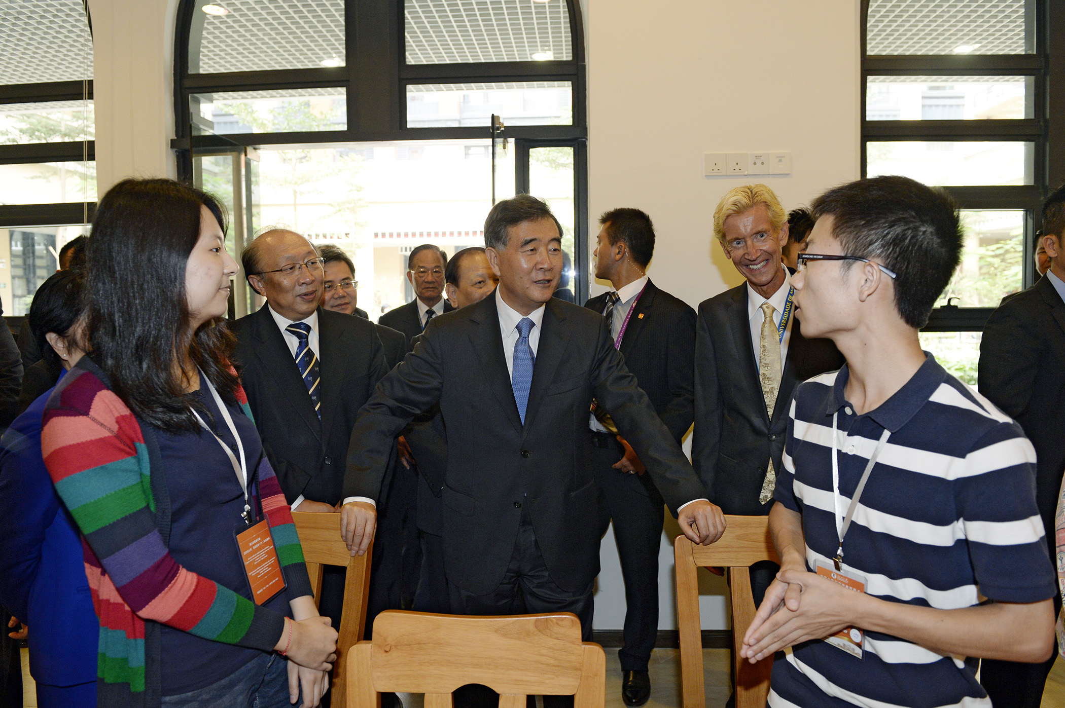 Finda a cerimónia, com acompanhamento da orquestra e do coro da UM, os convidados cantaram o hino da Universidade. Posteriormente, durante avisitaaos colégios residenciais,o vice-primeiro-ministro Wang Yang elogiou o bom ambiente do novo campus e conversou com os alunos sobre a sua vida e estudos.