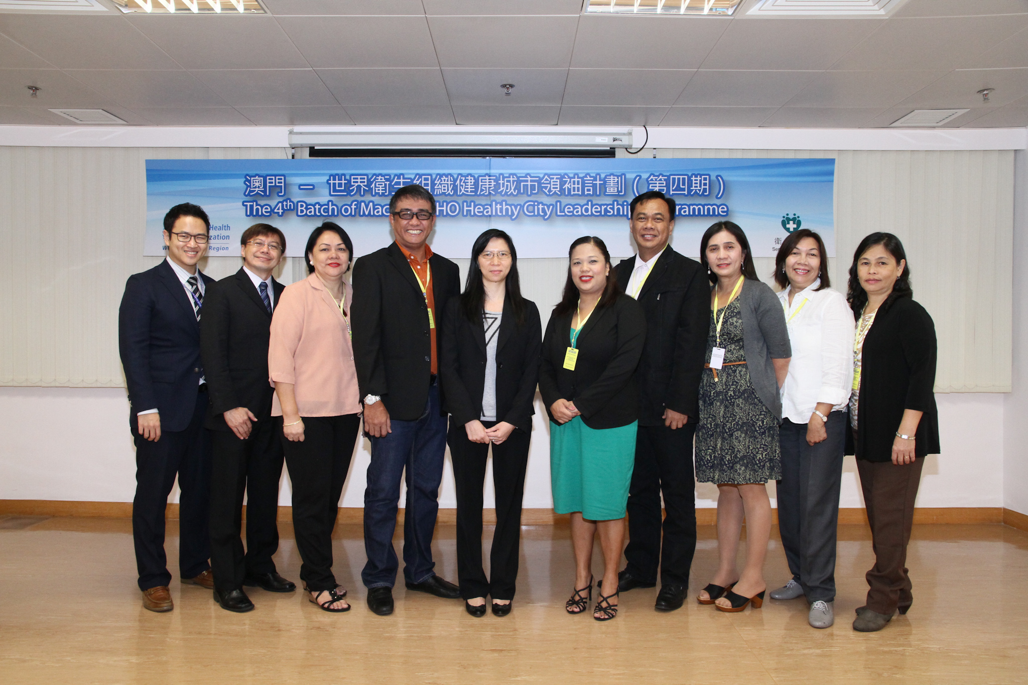 A sessão formativa denominada “O Programa de Liderança da Cidade Saudável da Organização Mundial de Saúde – Macau”, da IV Fase, organizada pelo Gabinete da Região do Pacífico Ocidental da Organização Mundial de Saúde, realizou-se em Macau de 14 a 15 de Novembro do corrente ano e teve como objectivo o reforço da capacidade de desenvolvimento do projecto de “Cidade Saudável” das cidades da região do pacífico ocidental e dos funcionários dos serviços competentes de saúde da mesma região. Esta actividade de formação foi realizada, respectivamente, nas cidades da Coreia, Macau e Hong Kong. Os 9 representantes provenientes da cidade de Davao, nas Filipinas, e do Gabinete das Filipinas da Organização Mundial de Saúde deslocaram-se a Macau para se inteirarem da experiência de Macau quanto ao desenvolvimento do Programa de Cidade Saudável de Macau, bem como dos factores de sucesso do mesmo.