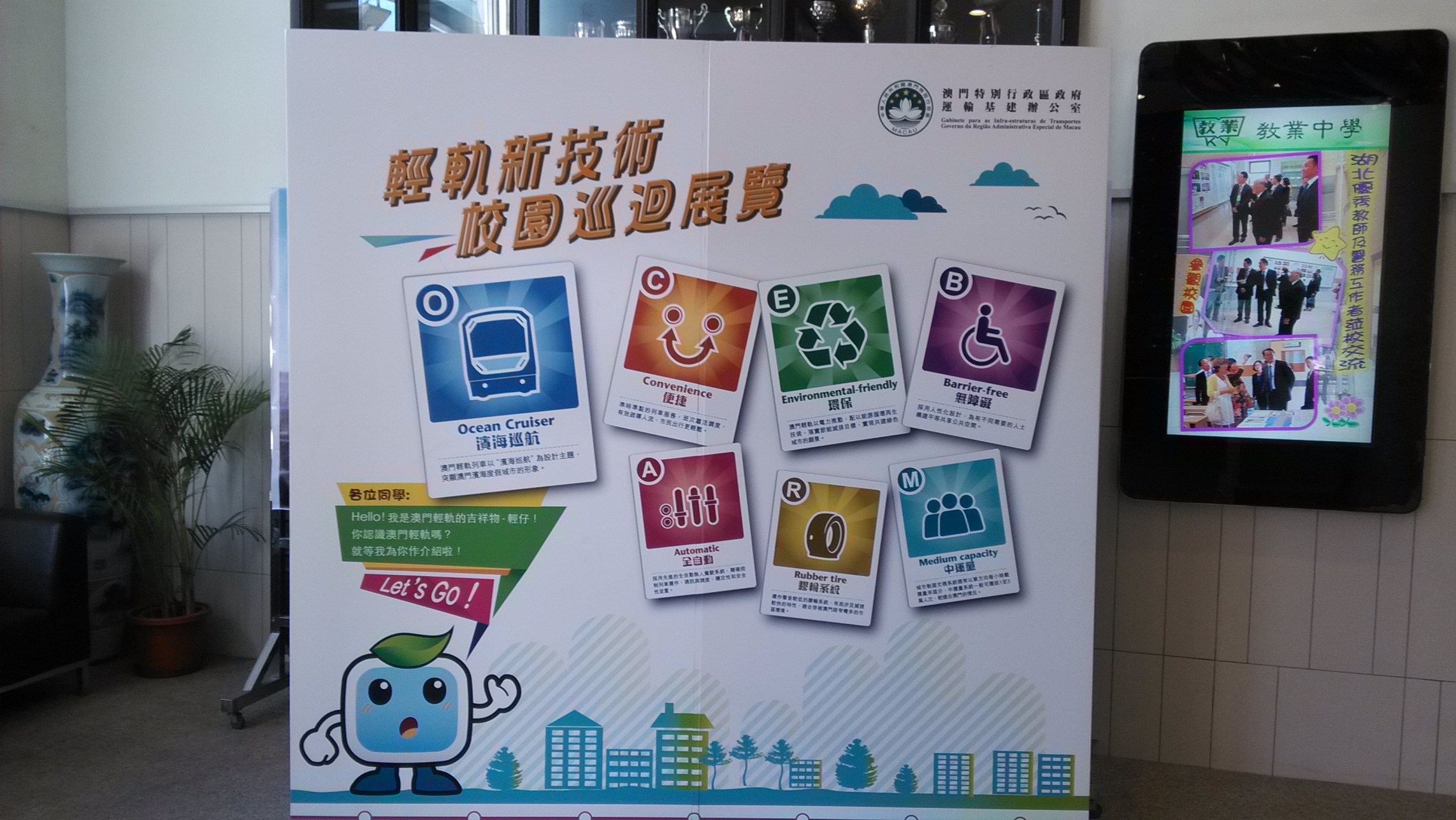 O Sistema de Metro Ligeiro de Macau tornar-se-á num meio principal do sistema de trânsito e transportes públicos. Com vista a permitir aos alunos tomar mais conhecimentos acerca deste meio de transporte novo e moderno, ou seja, o Sistema de Metro Ligeiro de Macau, o Gabinete para as Infra-estruturas de Transportes (GIT), esforçou-se em promover o trabalho da generalização dos conhecimentos do Metro Ligeiro nas escolas, sendo que já tinha sido registado mais de 1.400 alunos e professores inscritos para participar na actividade de visita “Entrar no Metro Ligeiro” – “Exposição do Sistema de Metro Ligeiro de Macau”, explorando os mistérios do mesmo. Além disso, a “Exposição Itinerante Escolar das Novas Técnicas do Metro Ligeiro” também entrou nas várias escolas secundárias, de modo a apresentar aos alunos os conhecimentos do Metro Ligeiro que devem saber.