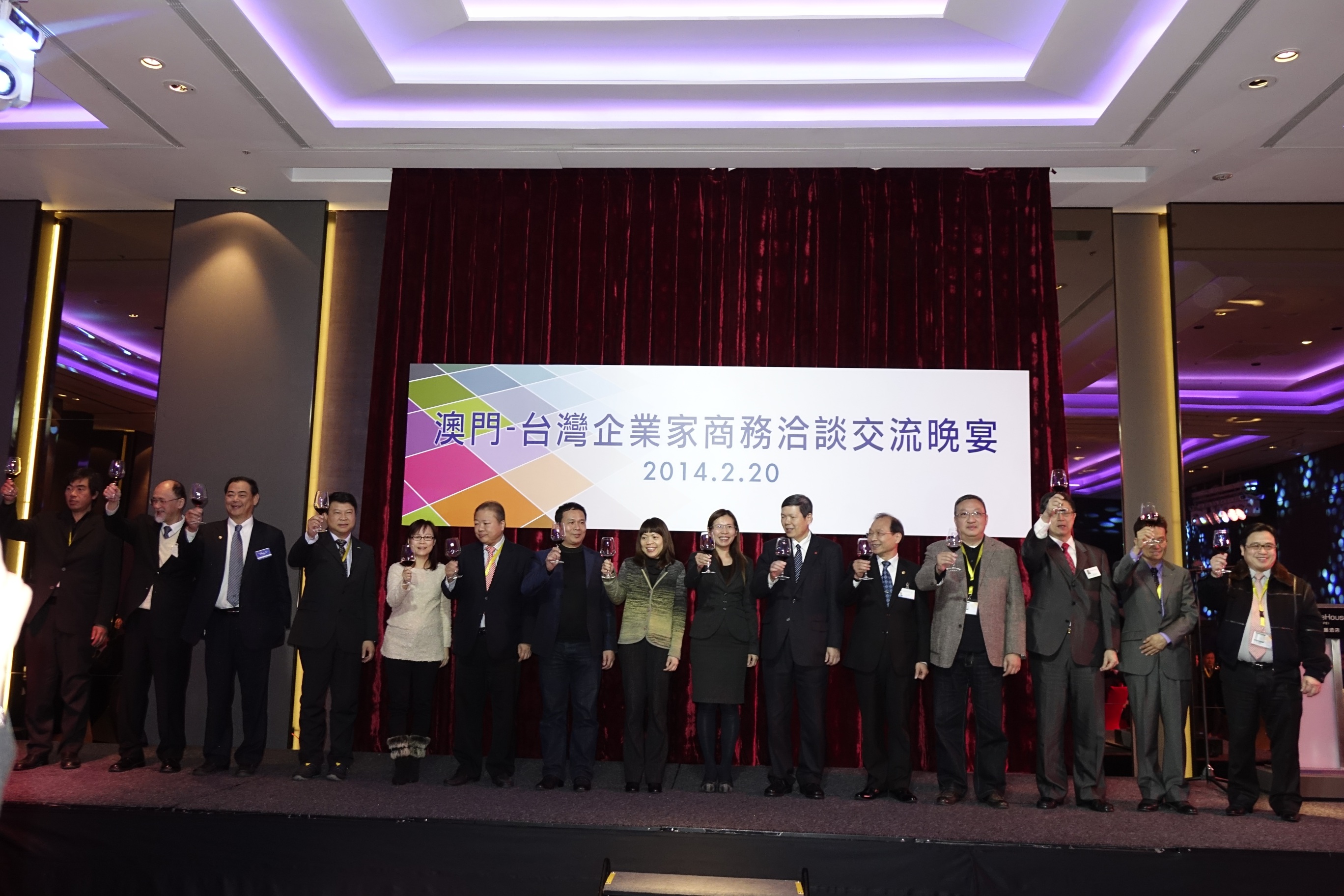 A Delegação Empresarial de Macau visitou, no dia de chegada (20 de Fevereiro), a Delegação Económica e Comercial de Macau em Taiwan, onde foi recebida pela Chefe da Delegação Dra. Leong Kit Chi. No intuito de promover, com maior intensidade, o intercâmbio entre as empresas de Macau e as suas congéneres de Taiwan, o IPIM organizou no mesmo dia, juntamente com o Taiwan Trade Development Council (TAITRA), e com o apoio da Delegação Económica e Comercial de Macau em Taiwan, o Seminário e Jantar de Intercâmbio Comercial entre as Empresas de Macau e Taiwan, para o qual foram convidados diversos representantes da comunidade empresarial de Taiwan para intercâmbio com as empresas Macau e, ao mesmo tempo, apresentar-lhes o ambiente de investimento em Macau e promover a 2014MFE. O referido evento contou com a presença do Vice Secretário-Geral do TAITRA, Yeh Ming-shui, entre mais de 90 representantes das associações comerciais de diversos ramos de actividade, organizações de cadeia de lojas e empresas de marca de Taiwan, nomeadamente, a Vice Secretária-Geral da Youth Career Development Association Headquarters, Taiwan, Chen Lee-hwa, o Vice-Presidente da National Association of Small & Medium Enterprises, Taiwan, Chang Ta-wei , o Director Executivo da Central Chamber of Commerce, Taiwan, Wang Chuan-hung, e o Vice-Presidente da Direcção da “Association of Chain and Franchise Promotion, Taiwan”, Fu Hsin-chin. Durante a estadia em Taiwan, foi também programada a visita dos membros da delegação a diversas empresas titulares de marcas de renome em Taipei, incluindo a cadeia de lojas da marca “Debola”, o Grupo Sun Spark (“Laya Burger”) e a marca de restauração “Mactugal”, representando esta última um investimento de empresários de Macau em Taiwan.