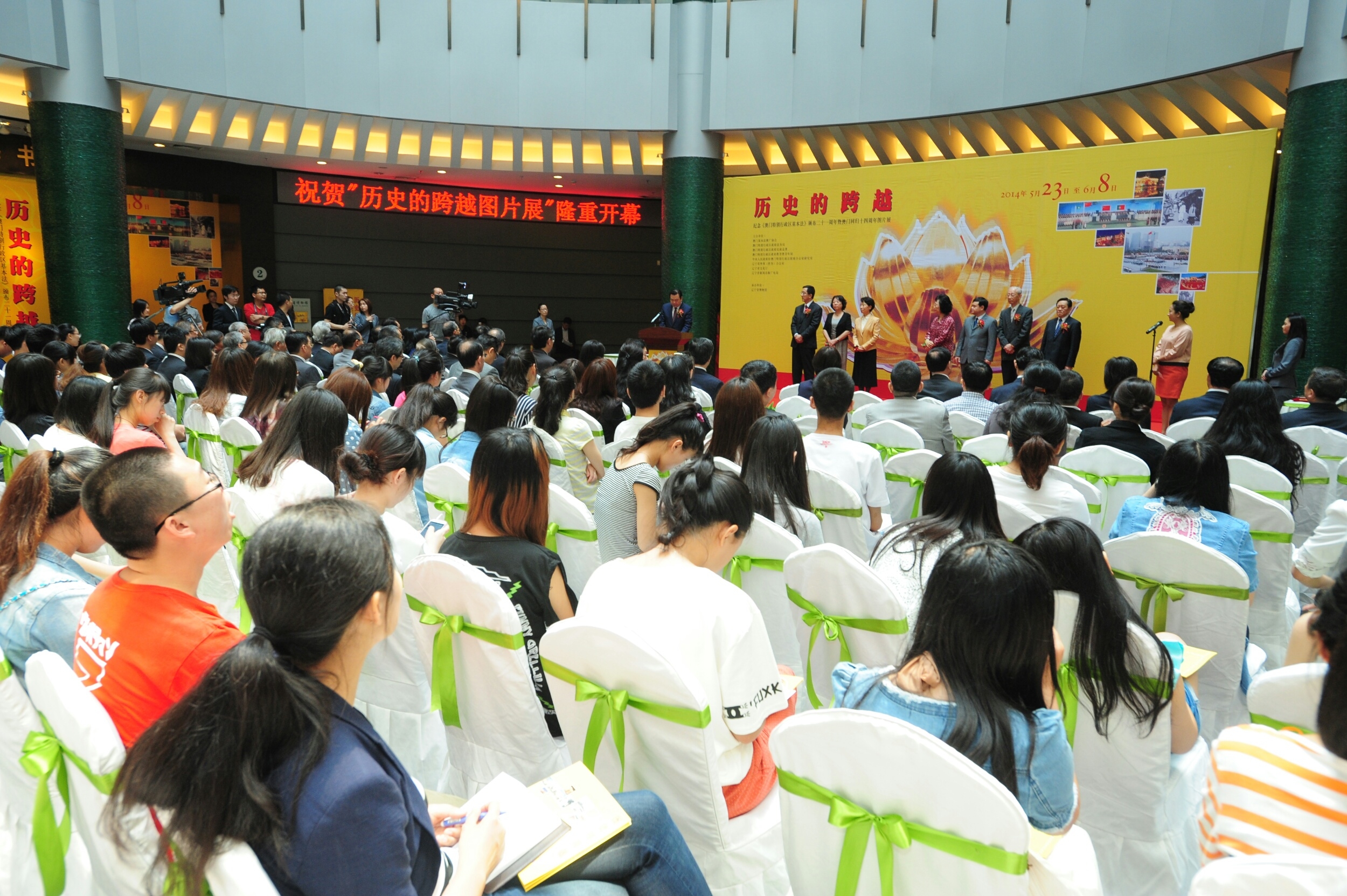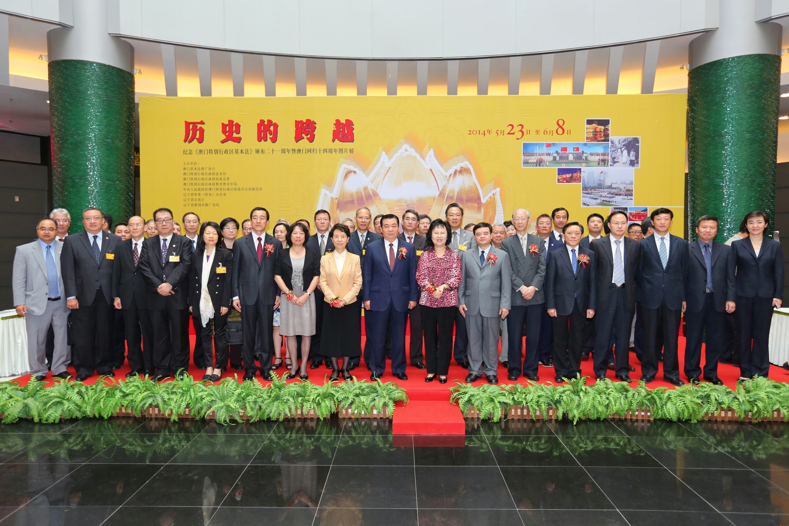 Os representantes de Macau que presidiram à cerimónia de inauguração da exposição de fotografias foram: a Secretária para a Administração e Justiça da RAEM, Florinda Chan, o Subdirector do Departamento de Estudo do Gabinete de Ligação do Governo Popular Central na RAEM, Hou Hong, e os Vice-Presidentes da Associação de Divulgação da Lei Básica de Macau, Ieong Wan Chong e Lai Chan Keong. Os representantes da província de Liaoning foram: o Vice-Governador do Governo Popular da Província de Liaoning, Bing Zhigang, o Vice-Presidente do Conselho Consultivo Político da Província de Liaoning, Gao Peng, o Vice-Presidente do Conselho Consultivo Político da Cidade de Shenyang, Han Xiaoyan, e o Subdirector do Gabinete para os Assuntos Externos (Assuntos dos Chineses no Estrangeiro) da Província de Liaoning, Sun Dagang.