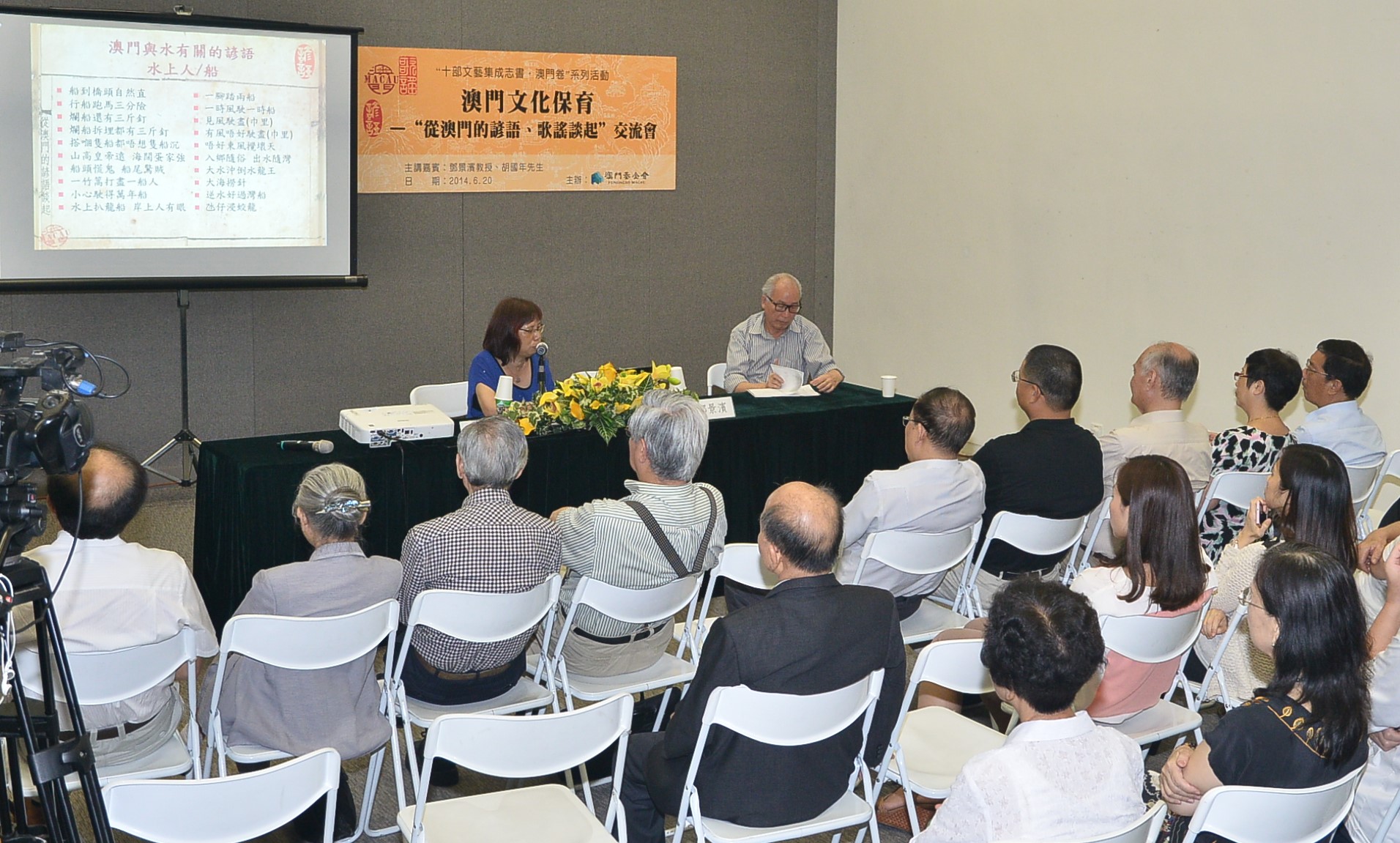 O Seminário “Protecção da Cultura de Macau – Provérbios, Frases Idiomáticas e Canções”, organizado pela Fundação Macau, teve lugar no passado dia 20 de Junho de 2014 no Centro UNESCO de Macau e foi presidido pelos responsáveis das equipas encarregadas da edição da “Colectânea de Provérbios e Frases Idiomáticas Chineses – Tomo de Macau” e “Colectânea de Canções Chinesas – Tomo de Macau”, respectivamente, Prof. Tang Keng Pan e Dr. Wu Kuok Nin. Estiveram também presentes no seminário o Presidente do Conselho de Administração da Fundação Macau, Wu Zhiliang, as diversas equipas encarregadas da edição da “Colectânea das Crónicas das 10 Artes e Cultura Chinesa – Tomo de Macau” e mais de 60 personalidades oriundas de diversos sectores sociais de Macau, incluindo os sectores cultural, educativo e artístico e, ainda, do sector dos jogos de fortuna e azar. No seminário, houve uma troca de opiniões muito calorosa, entre os oradores e participantes, sobre a arte e cultura popular de Macau e as respectivas formas de preservação.