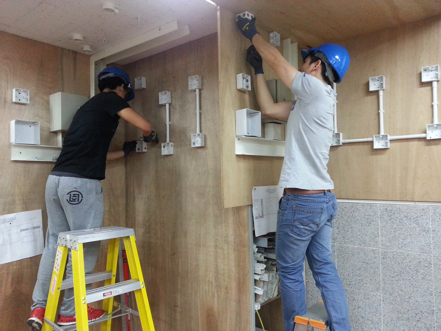 No “Curso de electricidade de instalações” lecciona-se essencialmente teoria básica de electricidade, análise dos sistemas de energia, técnicas de instalação e conhecimentos sobre o sistema automático, enquanto no “Curso de electrónica de potência e telecomunicações” se lecciona princípios básicos de electrónica, análise de circuitos, técnicas de verificação e reparação de avarias e instalação de aparelhos electrónicos, nomeadamente equipamentos de fiscalização da segurança, sistemas de alteração de linhas telefónicas e sistemas de som. Para se realçar a parte mais prática indo ao encontro das necessidades concretas do sector de reparação de obras, estes cursos não se focam somente na teoria e na prática de técnicas, mas também, no ensino do uso de diversos aparelhos profissionais e equipamentos de simulação de trabalho, a fim dos formandos compreenderem, absorverem e dominarem mais facilmente as técnicas profissionais.
