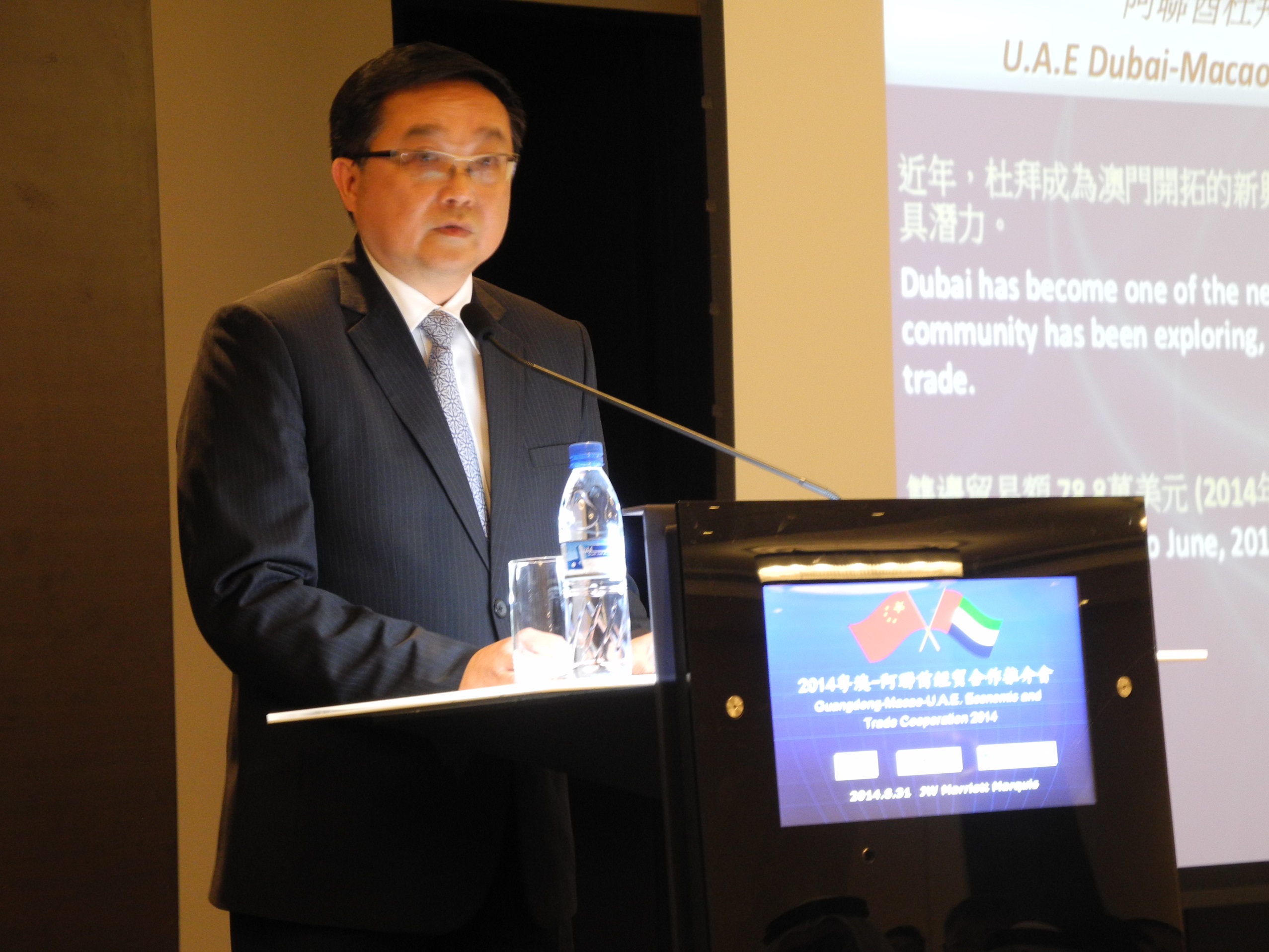 No seminário promoção que teve lugar nos EAU, o Presidente Jackson Chang fez uma introdução sobre a situação da cooperação económica e do comércio bilateral entre Macau e aquele país, tendo salientado o facto de os Emirados Árabes Unidos se terem tornados num dos países emergentes que Macau pretende explorar, especialmente tendo em consideração o potencial da cooperação nos domínios do comércio e do turismo. Além disso, denota-se também uma tendência de crescimento no número de residentes de Macau que visitam Dubai. Em 2013, Macau recebeu mais de quinze mil visitantes provenientes do Médio Oriente, correspondente a um crescimento de 5,5% face ao ano anterior. No primeiro trimestre do corrente ano, o crescimento do número de visitantes provenientes daquela região foi da ordem dos 8%. Também no mesmo período, as trocas bilaterais entre os EAU e Macau ascenderam a 788 mil dólares americanos, correspondente a um aumento a 92,4% face ao mesmo período do ano anterior. Dado que Macau oferece um ambiente favorável ao investimento e amplas oportunidades de negócio, os referidos factores poderão gerar, no futuro, oportunidades de cooperação económica e comercial mais abrangentes entre os Emirados Árabes Unidos, Macau e Guangdong. Em ambos os seminários, o Presidente Jackson Chang incentivou as empresas da África do Sul e dos EAU a visitarem Macau para estudar in loco o ambiente de investimento, e utilizar adequadamente a plataforma económica e comercial de Macau para investir na Região do Pan-Delta do Rio das Pérolas, inserida na Província de Guangdong, devendo, também, e utilizar Macau como plataforma para desenvolver os mercados dos países lusófonos. Ao mesmo tempo, exortou os empresários de Macau a promover mais visitas de estudo à África do Sul e aos EAU, para identificação de oportunidades de cooperação económica e comercial, estabelecendo, por esta via, os contactos e a cooperação com os referidos países. Em ambos os seminários, o Presidente Jackson Chang fez promoções sobre o recente desenvolvimento do ambiente de investimento em Macau, bem como sobre o desenvolvimento do sector de convenções e exposições da RAEM. Aproveitou também o ensejo para convidar os convidados da África do Sul e dos EAU, provenientes dos sectores governamental e empresarial, a visitaram Macau por ocasião da 19.ª Feira Internacional de Macau (MIF, na sigle em inglês).