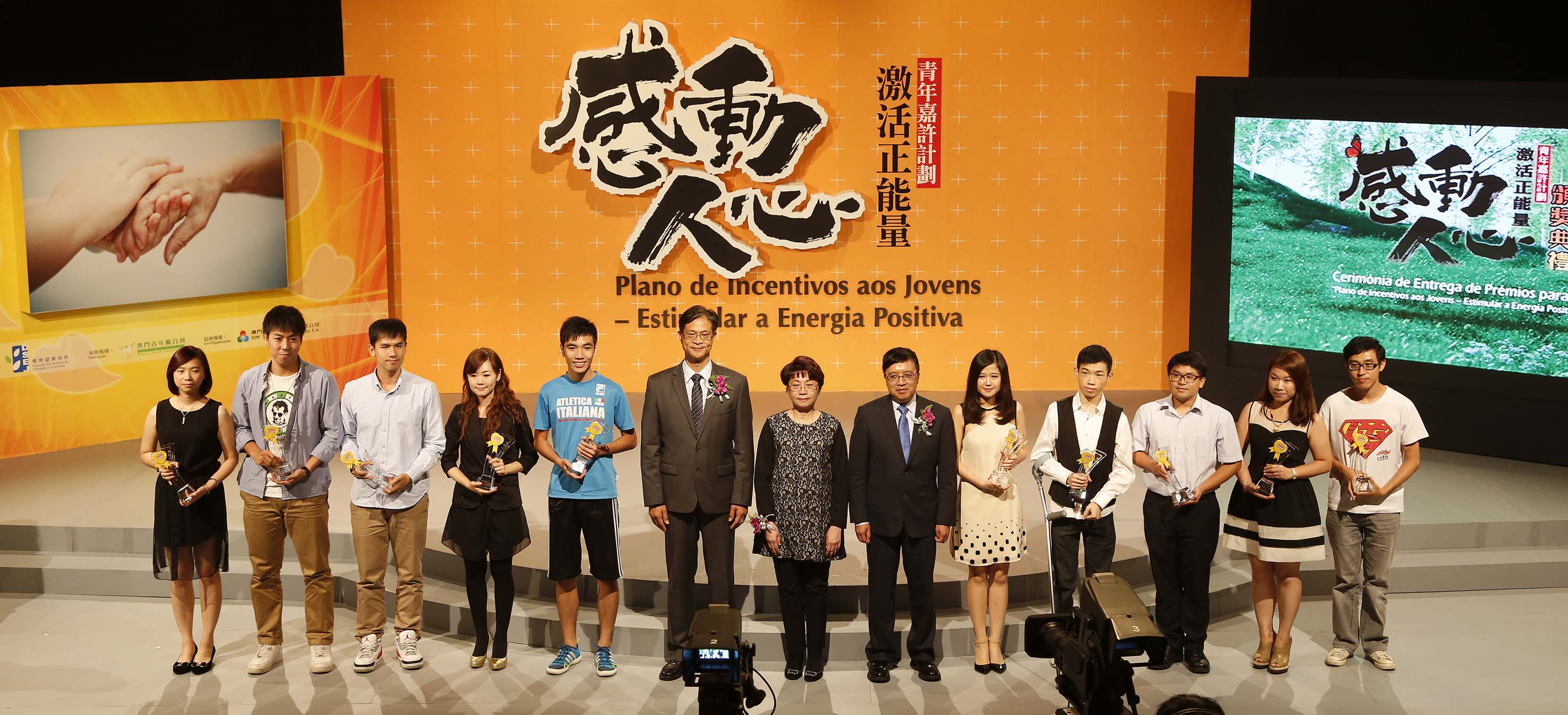 A cerimónia da entrega dos prémios, do referido plano, realizou-se pelas 19H00, do passado dia 24 de Setembro, no Pavilhão II, do Fórum de Macau. A DSEJ elogiou os dez protagonistas das histórias emocionantes através da entrega de prémios, convidando-os a partilharem as suas experiências e sentimentos no palco, numa atmosfera carinhosa e afectiva. Estiveram presentes, entre outros convidados na cerimónia, a Directora dos Serviços de Educação e Juventude, Leong Lai, o Assessor do Gabinete do Secretário para os Assuntos Sociais e Cultura da RAEM, Wai Cheng Iong, vários membros do Conselho de Educação para o Ensino Não Superior, do Conselho de Juventude, do Conselho Profissional do Pessoal Docente, da Federação da Juventude da China em Macau e, também, representantes da Federação de Juventude de Macau e da Teledifusão de Macau, S.A., bem como o júri da Comissão de apreciação e os jovens vencedores e seus proponentes.