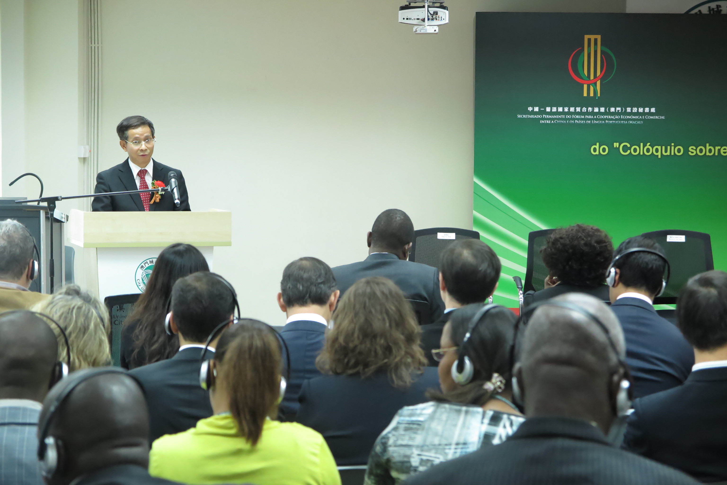 A cerimónia de abertura conta com a presença do Secretário-Geral do Secretariado Permanente do Fórum de Macau, Dr. Chang Hexi, do Director-Geral do Departamento dos Assuntos Económicos do Gabinete de Ligação do Governo Central Popular da China na RAEM, Dr. Kou Ming, do Director-Geral da Delegação Comercial do Departamento dos Assuntos Económicos do Gabinete de Ligação do Governo Central da República Popular da China na RAEM, Dr. Hu Jingyan, da representante do Comissariado do Ministério dos Negócios Estrangeiros da República Popular da China na RAEM, Dra. Li Rong, da Vice-Cônsul da República de Angola na RAEM, Dra. Maria Cezaltina Monteiro da Costa, do Cônsul-Geral de Portugal na RAEM e RAEKH e Delegado de Portugal junto do Secretariado Permanente do Fórum de Macau, Dr. Vitor Sereno, do Secretário-Geral Adjunto do Secretariado Permanente do Fórum de Macau (indicado pelos Países de Língua Portuguesa), Dr. Vicente de Jesus Manuel, da Secretária-Geral Adjunta (indicada pelo Governo da RAEM), Dra. Rita Santos, o Reitor em Exercício da Universidade da Cidade de Macau, Dr. Pang Shu Shing e o Chefe rotativo do Colóquio, Dr. Isaías Mondlane, bem como os Delegados dos Países de Língua Portuguesa junto do Fórum de Macau. O Secretário-Geral, Dr. Chang Hexi, o Reitor em Exercício da Universidade da Cidade de Macau, Dr. Pang Shu Shing e a Secretária-Geral Adjunta, Dra. Rita Santos assim como o Chefe rotativo do Colóquio irão usar da palavra na cerimónia de abertura.