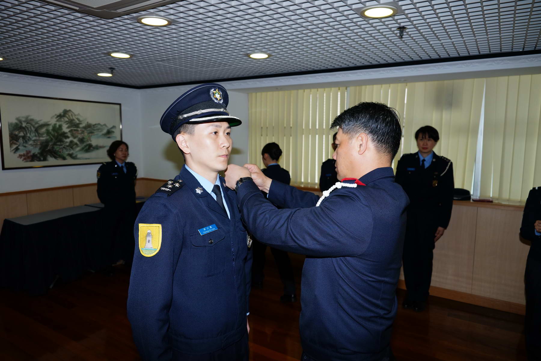 Hoje, dia 2 de Fevereiro de 2015, pelas 12H00, teve lugar no Comando do Corpo de Polícia de Segurança Pública, a cerimónia de promoção ao posto de comissário do Cheong Sio Iam. A cerimónia foi presidida pelos Exm.os Comandante do CPSP, Superintendente Geral Leong Man Cheong, 2.º Comandante, Superintendente Lai Kam Kun, e 2.ª Comandante Subst.ª, Intendente Ung Vong Pek Io, e contou ainda com a presença das chefias do Departamento Policial de Macau, que deram os parabéns ao oficial promovido.