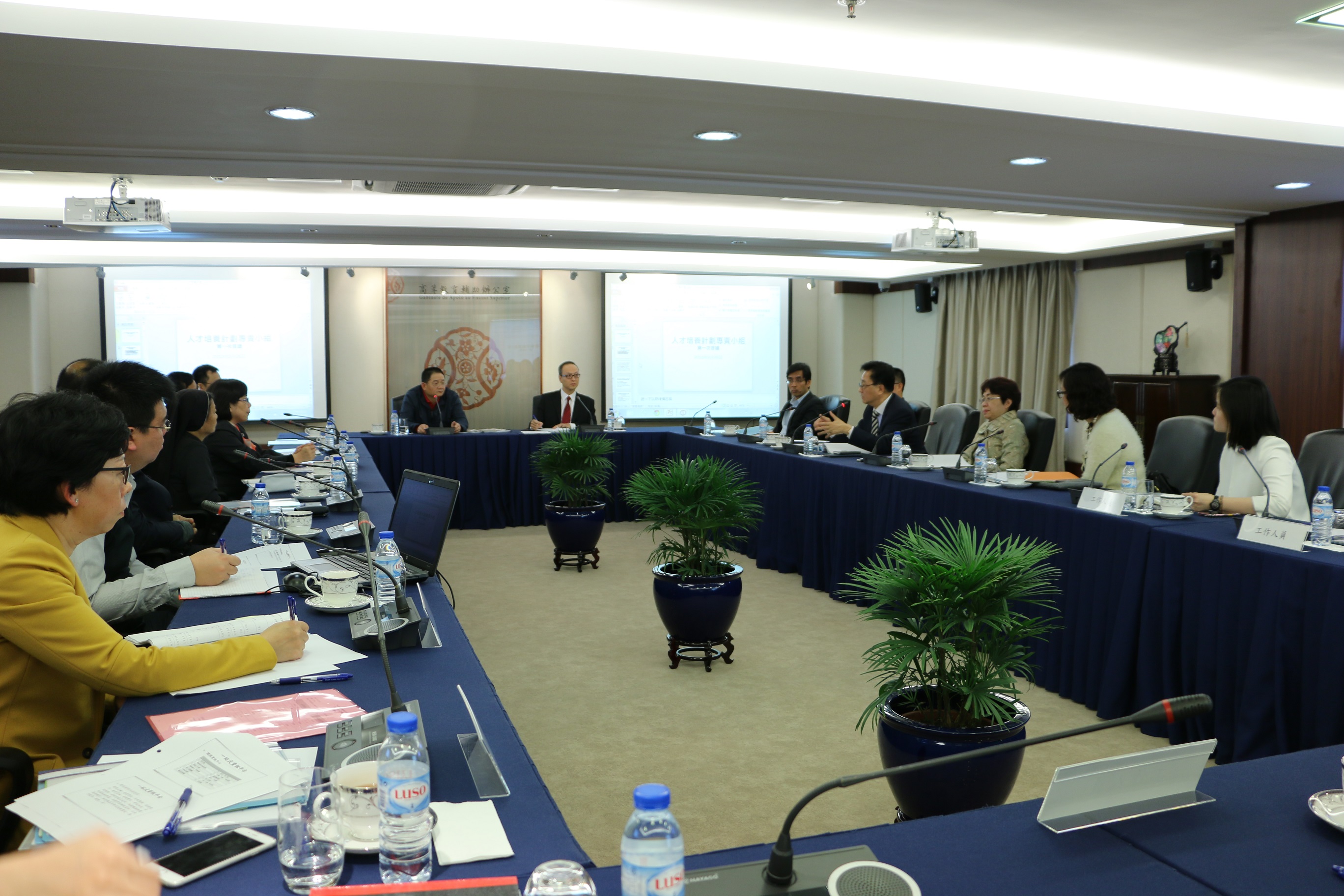 Membros da Comissão presentes no Grupo Especializado para Formação de Talentos: Wu Zhi Liang, Leong Lai, Lei Heong Iok, Chan Chi Fong, Sou Ying Suen, Pang Su Seng, Yu Wing Yat, Iu Vai Pan, Tai Wong Kuai Leng, Van Iat Kio, Ung Choi Kun e Sou Chio Fai.