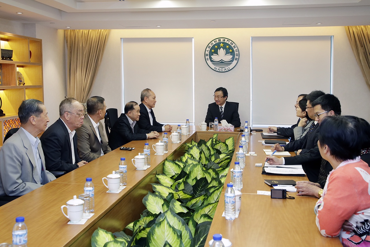 O Secretário para os Assuntos Sociais e Cultura, Doutor Alexis Tam, teve, hoje, na Sede do Governo, um encontro com uma delegação da Macau Myanmar Overseas Chinese Association, liderada pelo seu presidente José Wong e os vice-presidentes Iong Pak Cheong e Chan Tong Chang.