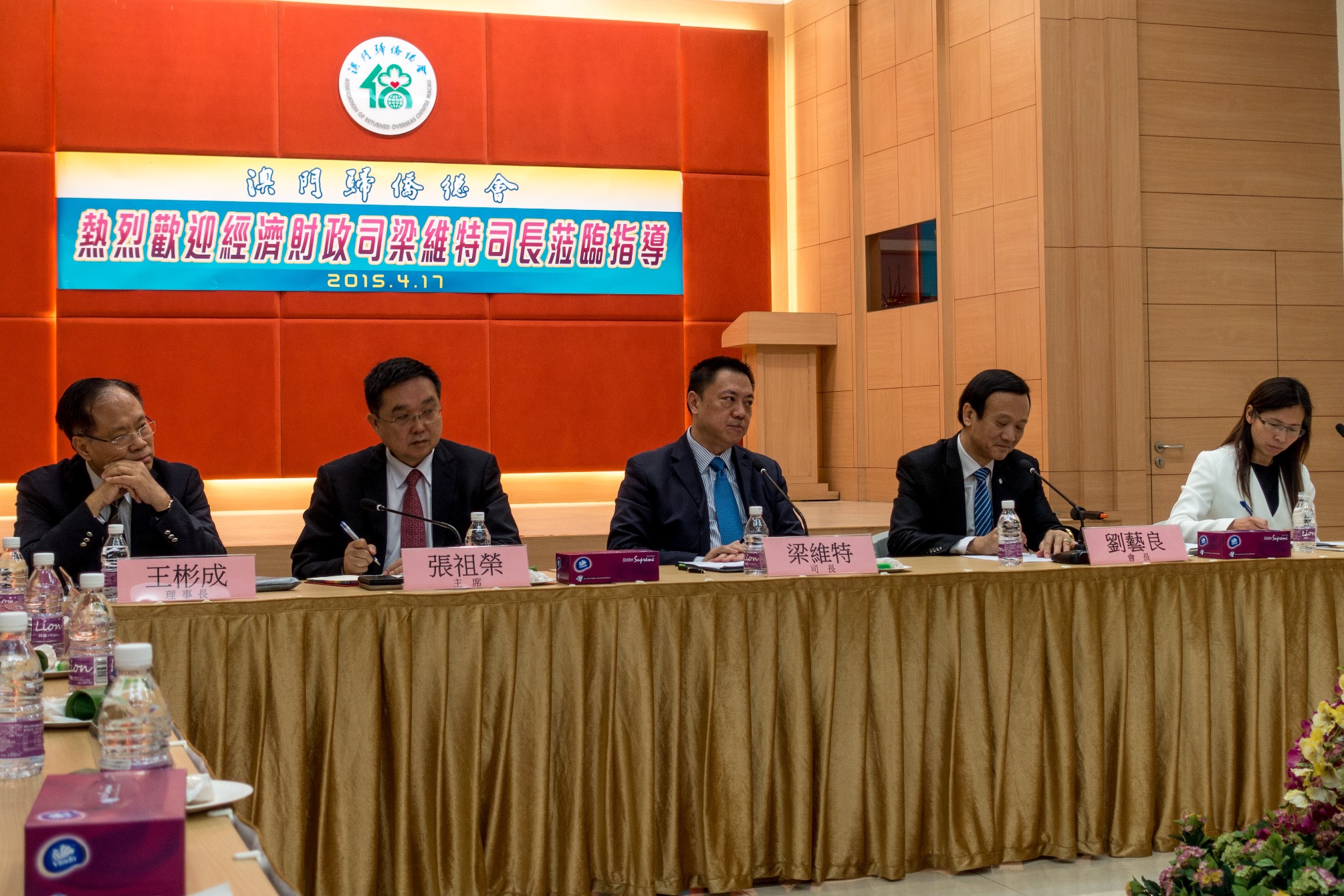 No dia 17 do corrente mês, o Secretário para a Economia e Finanças, Leong Vai Tac, efectuou uma visita à Associação Geral dos Chineses Ultramarinos de Macau, tendo trocado opiniões com o presidente da Associação, Lau Ngai Leong, e o presidente da Direcção da Associação, Wong Pan Seng, sobre a valorização do papel de Macau como plataforma de serviços económicos e comerciais, assim como as vantagens dos chineses ultramarinos e seus familiares que mantêm amplos contactos com o exterior, tendo auscultado opiniões dos representantes da Associação focadas na participação na estratégia do desenvolvimento do Estado, designada como a “Faixa Económica da Rota da Seda” e a “Rota Marítima da Seda do Século XXI”, na promoção do empreendedorismo juvenil, entre outros temas.