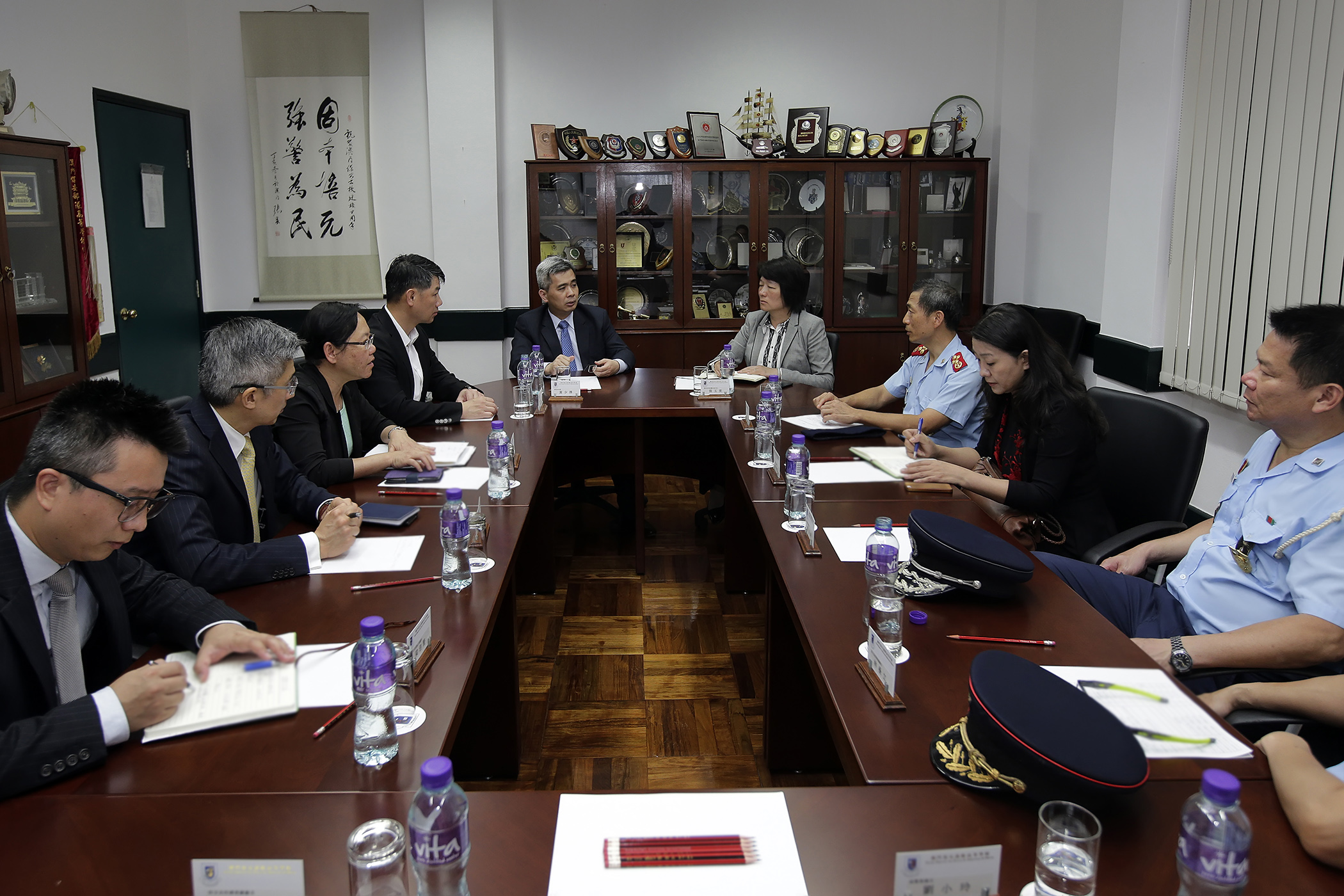 Na visita, o Secretário foi também acompanhado pela Chefe do Gabinete do Secretário para a Segurança, Cheong Ioc Ieng, pelo Subdirector da Escola Superior das FSM, Cheong Iok Kuan, pela Segunda Comandante do CPSP, Ung Vong Pek Io e por assessores do seu Gabinete.