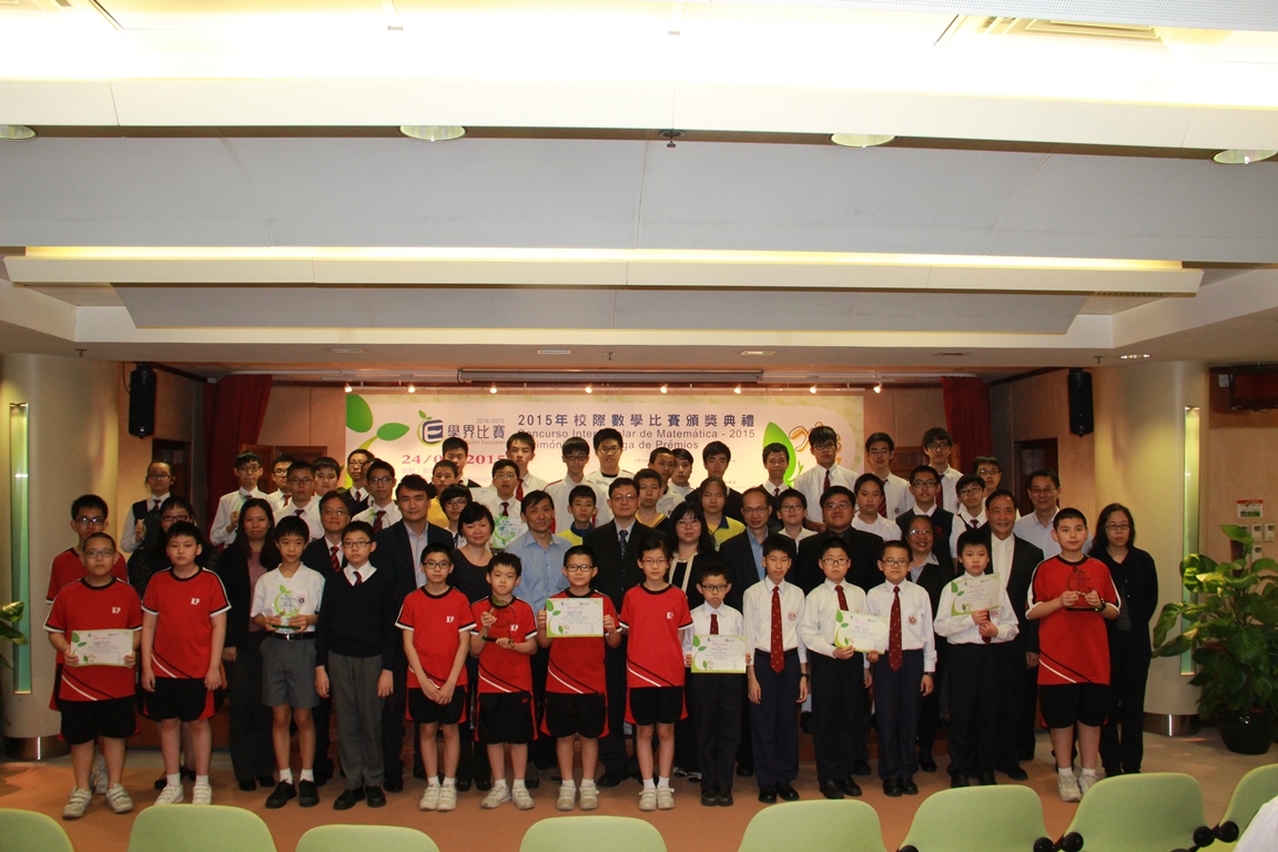 A Direcção dos Serviços de Educação e Juventude (DSEJ), em colaboração com a Faculdade de Ciências e Tecnologia da Universidade de Macau, organizou, com êxito, o Concurso Interescolar de Matemática 2015 (categorias dos ensinos primário, secundário geral e secundário complementar). A fim de elogiar os alunos premiados, a DSEJ realizou, no dia 24 de Abril, a cerimónia de entrega de prémios, na qual estiveram presentes os seguintes convidados: director, substituto, Lou Pak Sang, e chefes da DSEJ, professor auxiliar da Faculdade de Ciências e Tecnologia da Universidade de Macau, Leong Ieng Tak, e directores de várias escolas dos ensinos primário e secundário. A DSEJ e a instituição colaboradora tencionaram, através deste concurso, promover o espírito de investigação e aprendizagem da matemática pelos alunos, melhorar as suas capacidades nesta disciplina, e aproveitar a oportunidade para descobrir os alunos com potencialidades para participarem nos concursos de matemática regionais e internacionais dos ensinos primário, secundário geral e secundário complementar, e, em simultâneo, reforçar o intercâmbio com os alunos de várias regiões, ampliando, também, os seus horizontes.